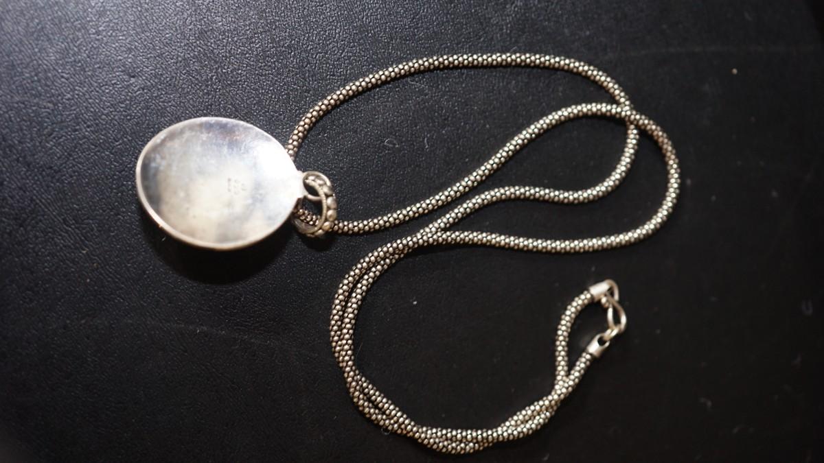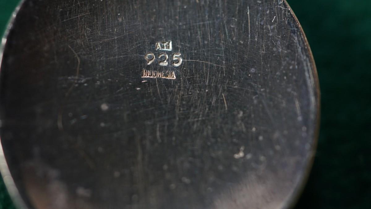 the pendant is stamped on back 925 Indonesia and the initials of A.T for artist