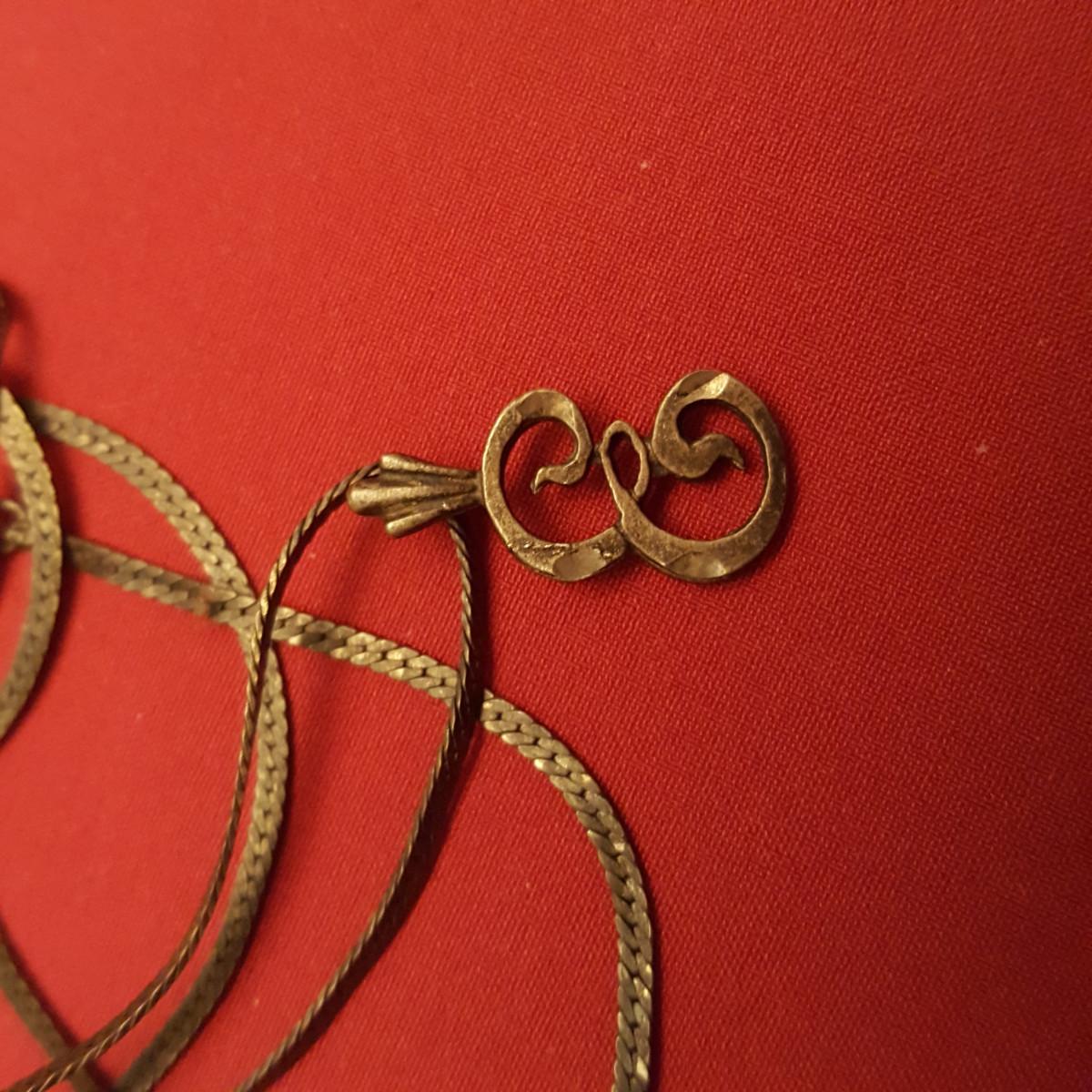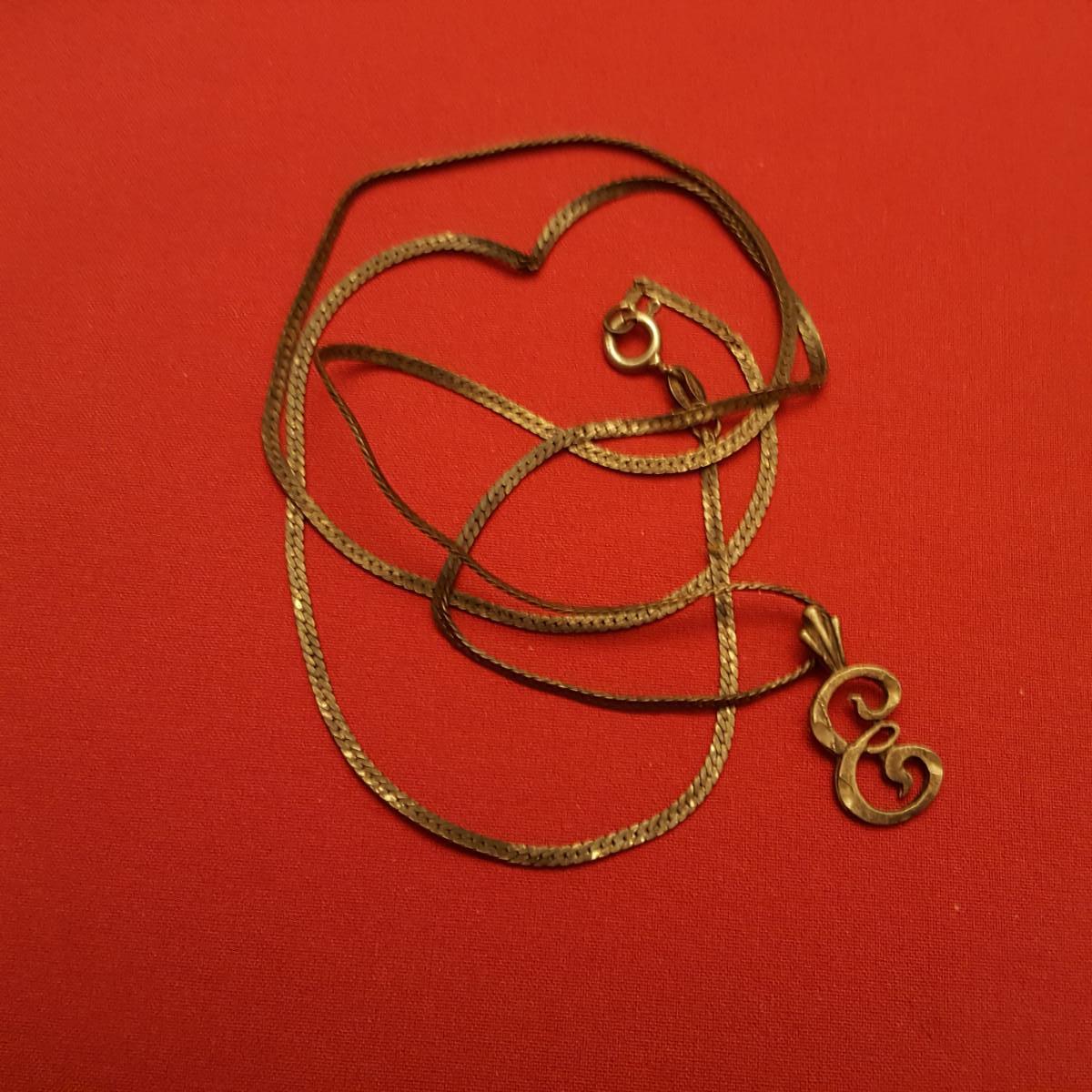 This auction lot is for a Sterling Initial Necklace. The necklace is marked 925/Italy. The necklace measures about 23-inches long. The initial is the letter "E" - the photos make the necklace appear to have a gold color but the actual necklace sports a tarnished silver patina. The necklace weighs about .16ozt.
