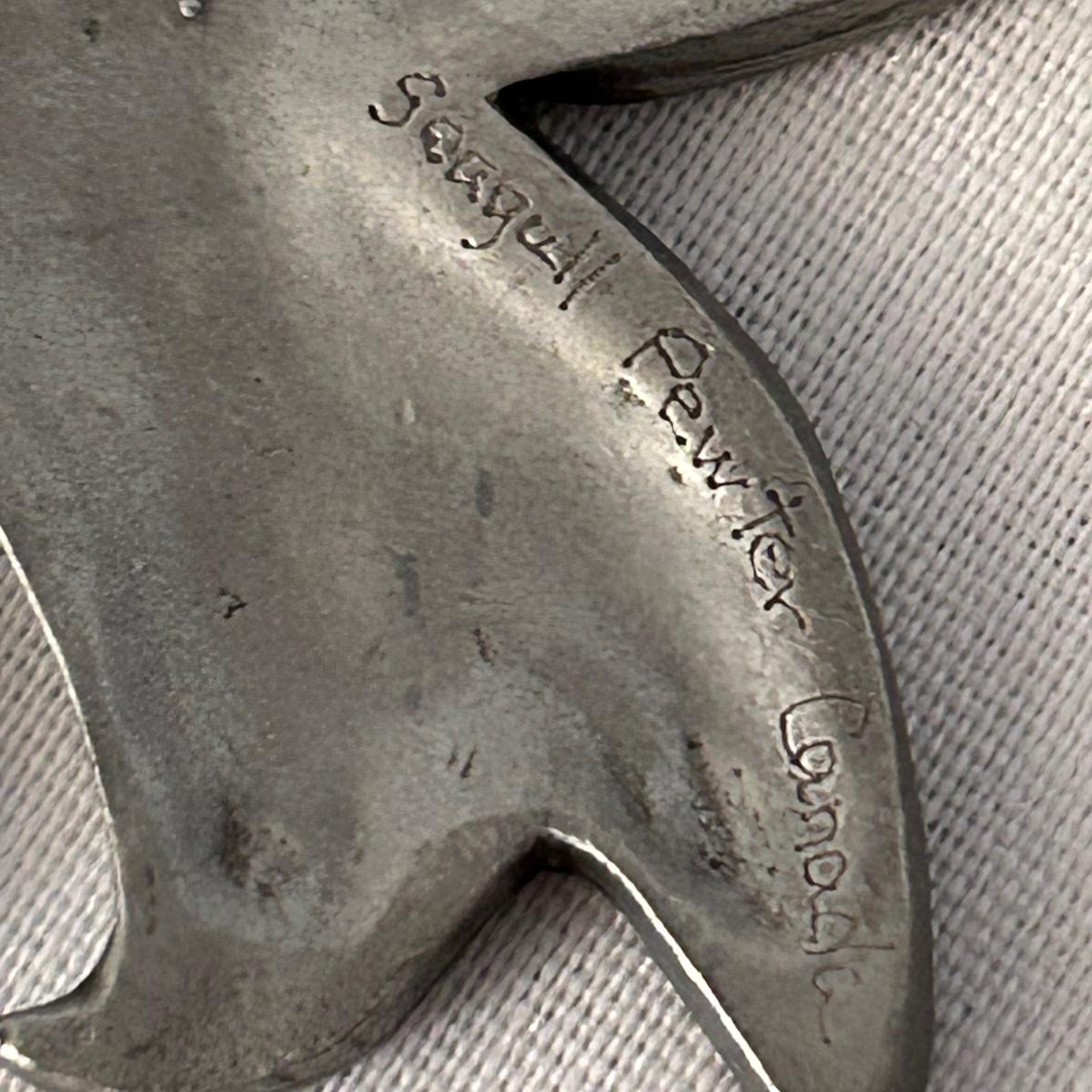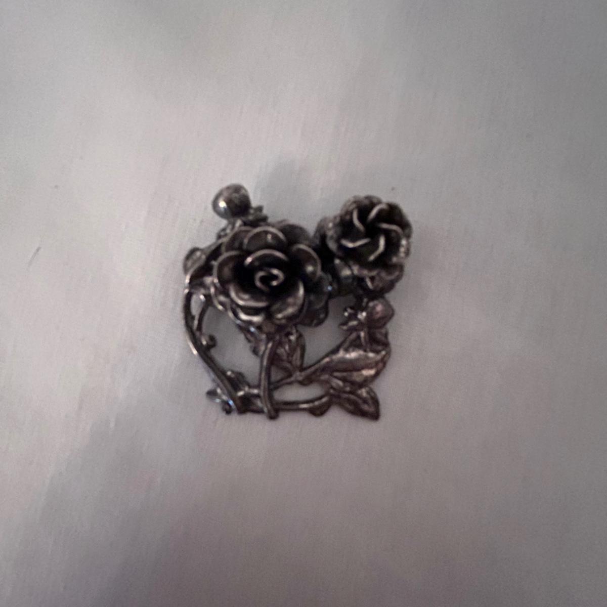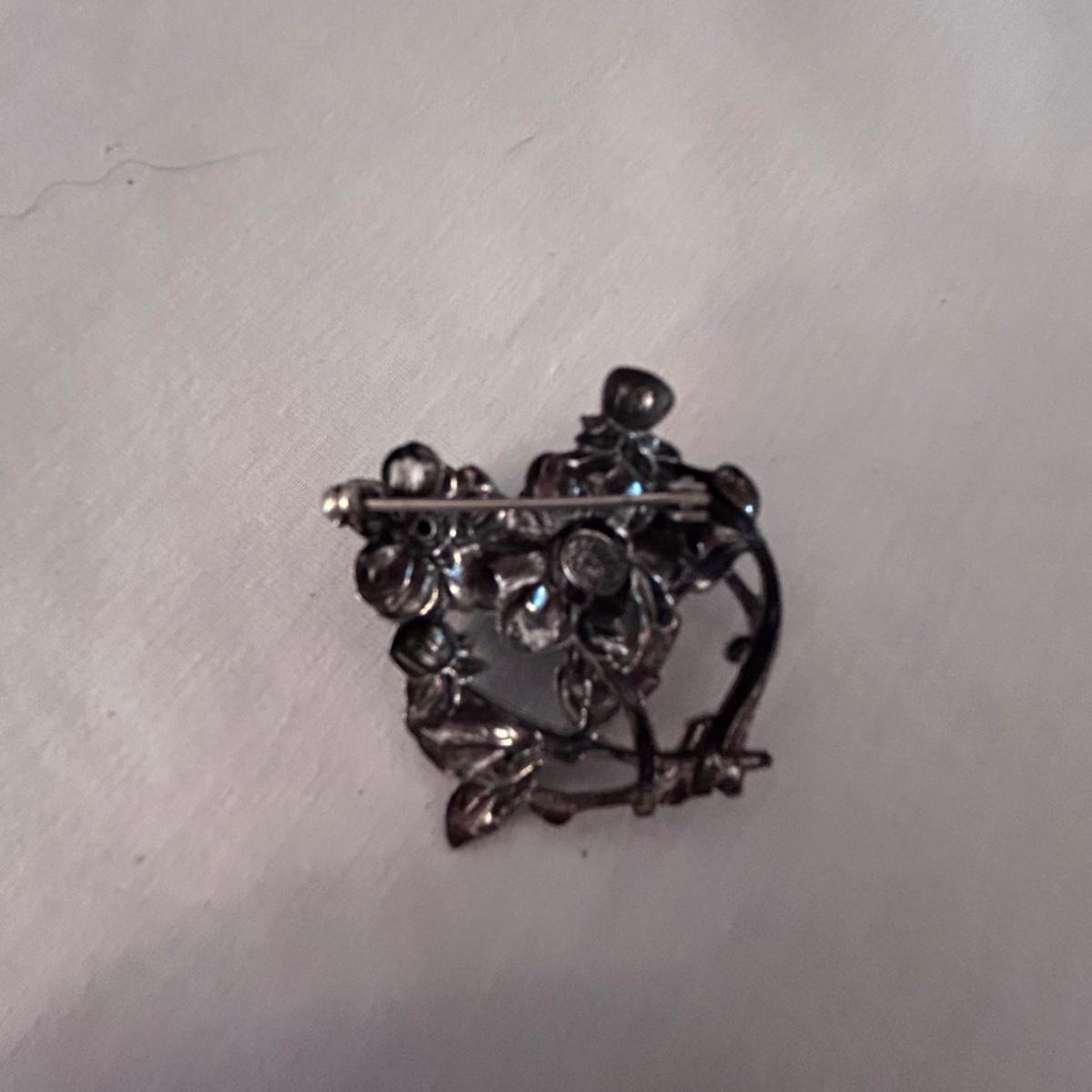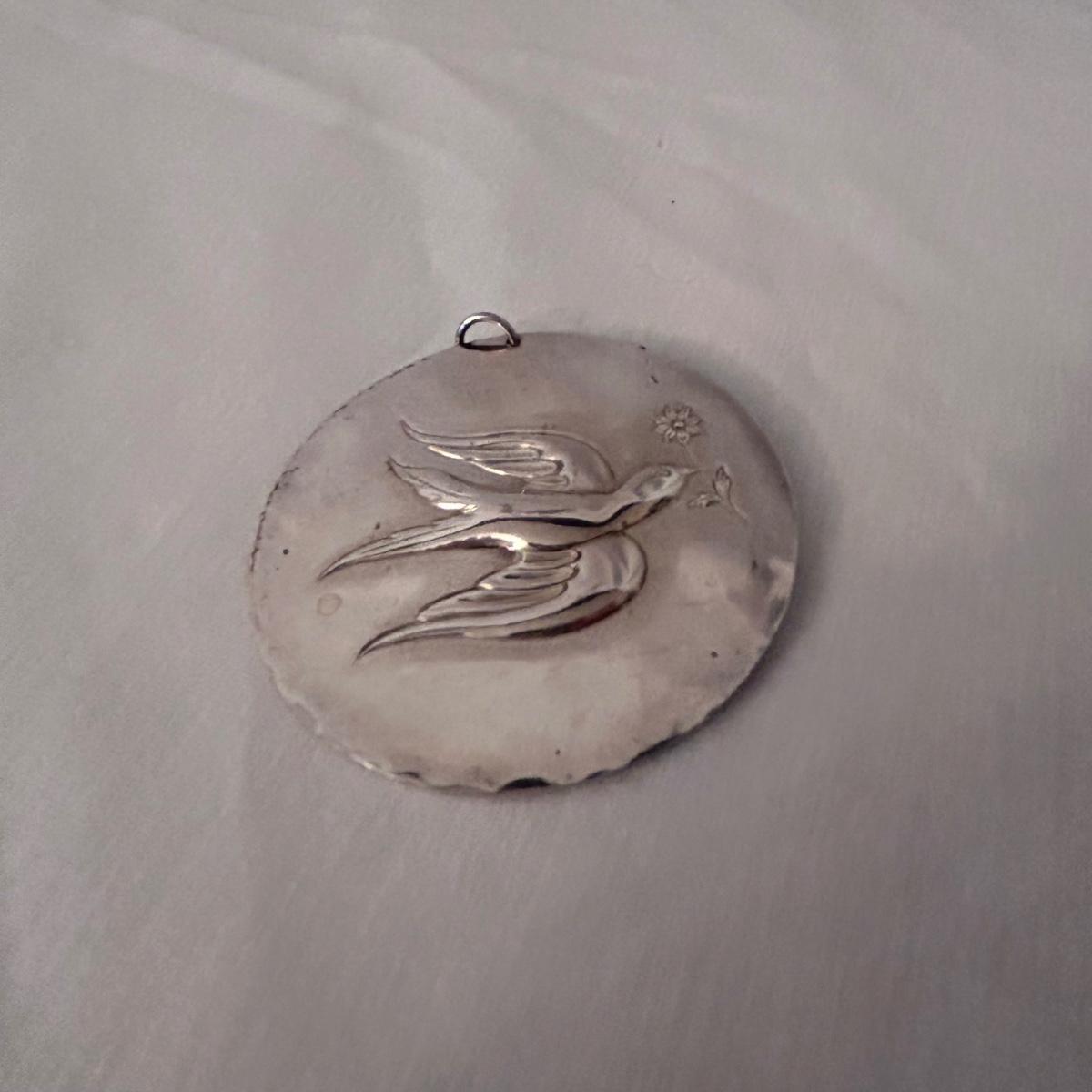 Three statement pieces, two are pins and one is a pendant. The pendant is a 1971 Towle Sterling piece with hammered bird motif.. the floral pin is Jewelart Sterling and the bow pin is a seagull pewter from Canada.