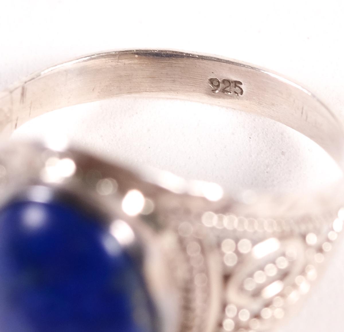 Sterling Lapis Lazuli Ring. Size 8.25. Stamped 925. Weighs approx. 3.9 grams.