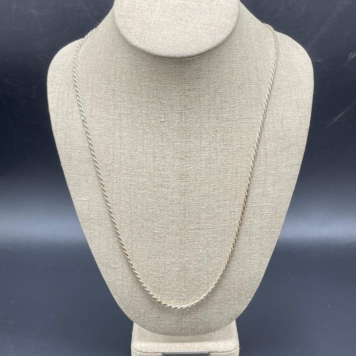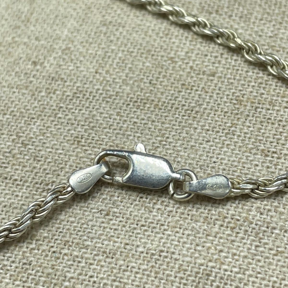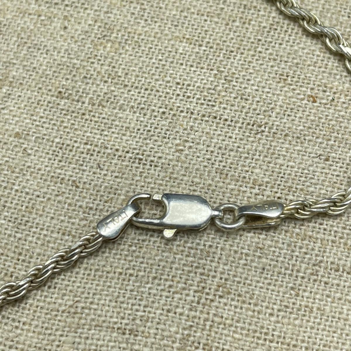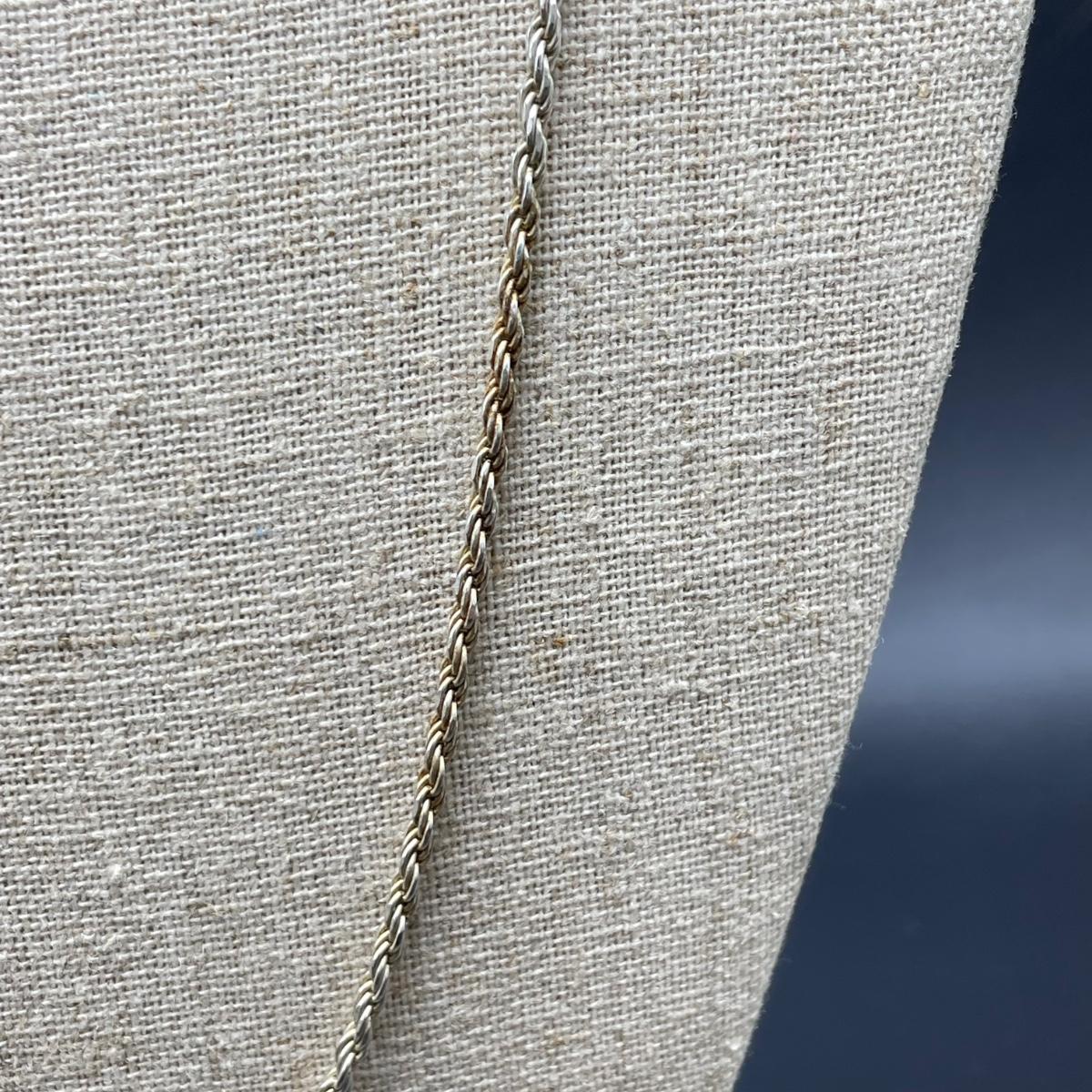 24” chain plus a unique locket both marked 925. The chain is a bit discolored in spots, but will probably shine up easily. Lot also contains a glass like bulb in a silvery leafy setting. See images. Shipping available.
