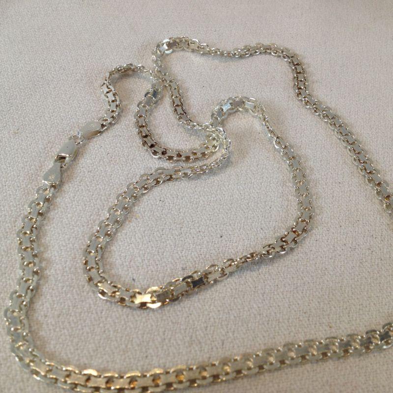 This offering is a Chain Necklace which is quite showy. It measures 30-inches long and weights .81 ozt. Stunning.