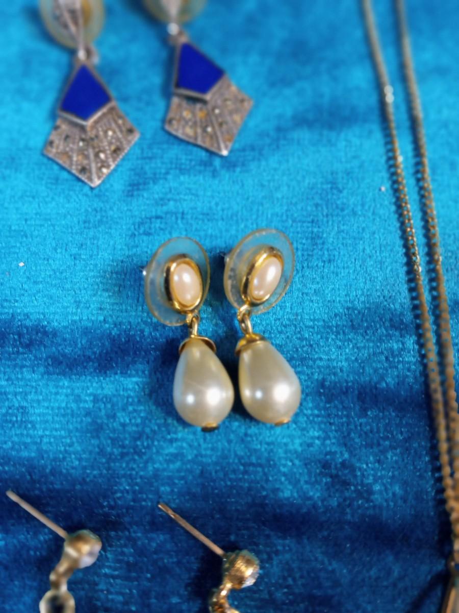 STERLING MARCASITE EARRINGS AND OTHER COSTUME JEWELRY