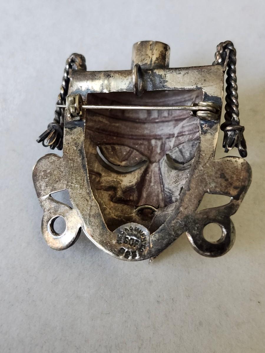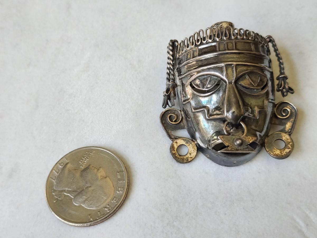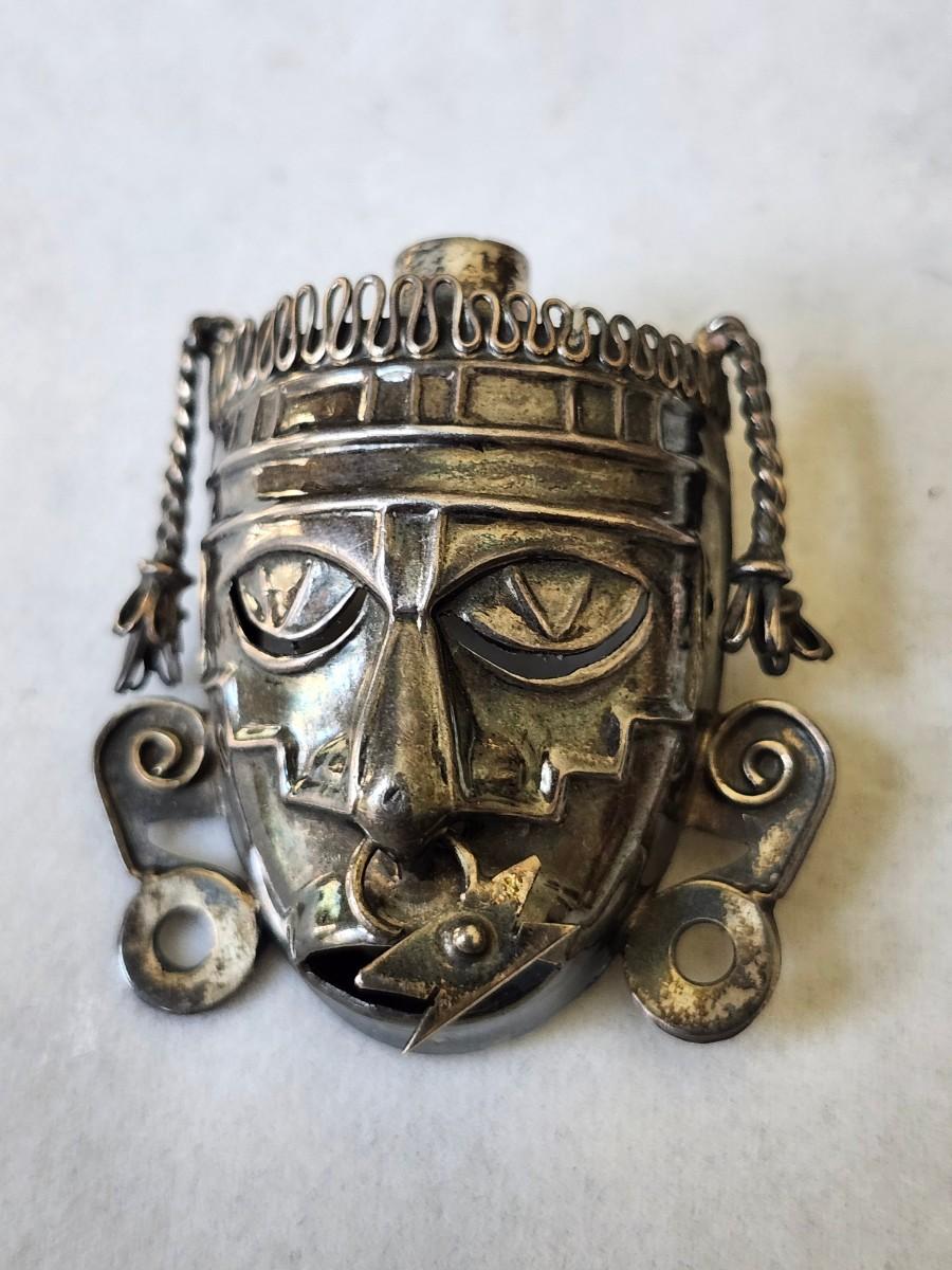 Sterling Mayan Aztec Tribal Face Pin-Pendant