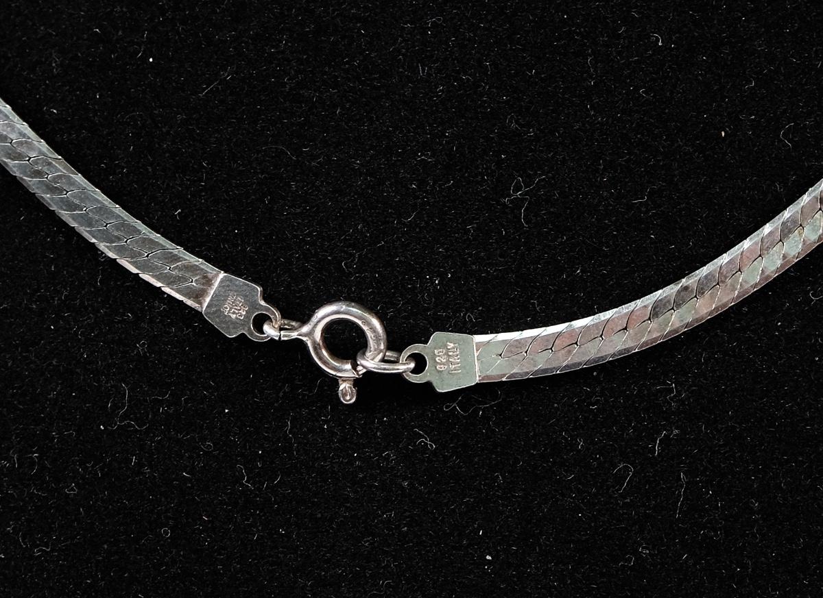 Sterling Milor herringbone chain necklace. Stamped 925 Milor ITALY. Measures approx. 19.75" with a 3.18 mm width. Weighs approx. 9 grams.