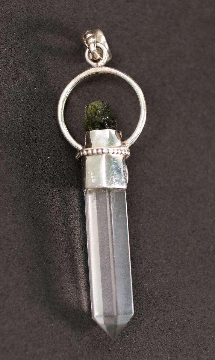 Sterling Moldavite, Amethyst & Quartz Point Pendant