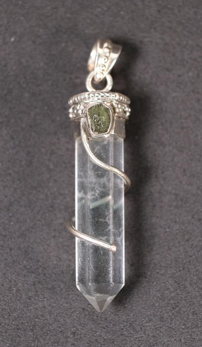 Sterling Moldavite & Quartz Point Pendant
