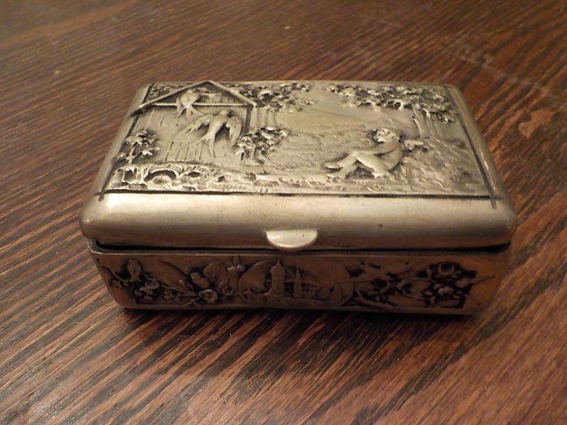 European sterling silver change holder box. sz. 4 x 4 x 1.. Pictures of Hall marks for sterling silver. This appears to be 1800's from Europe.