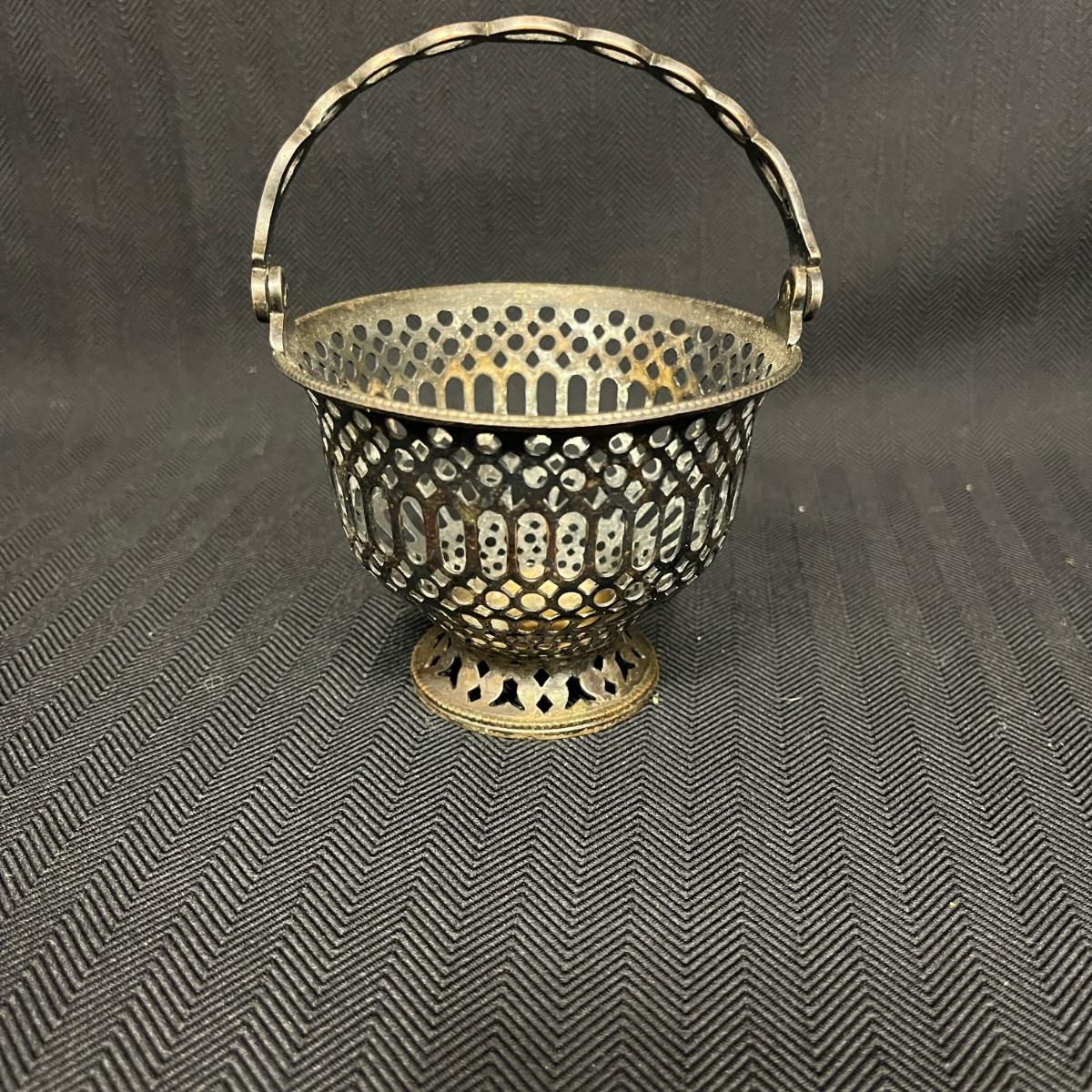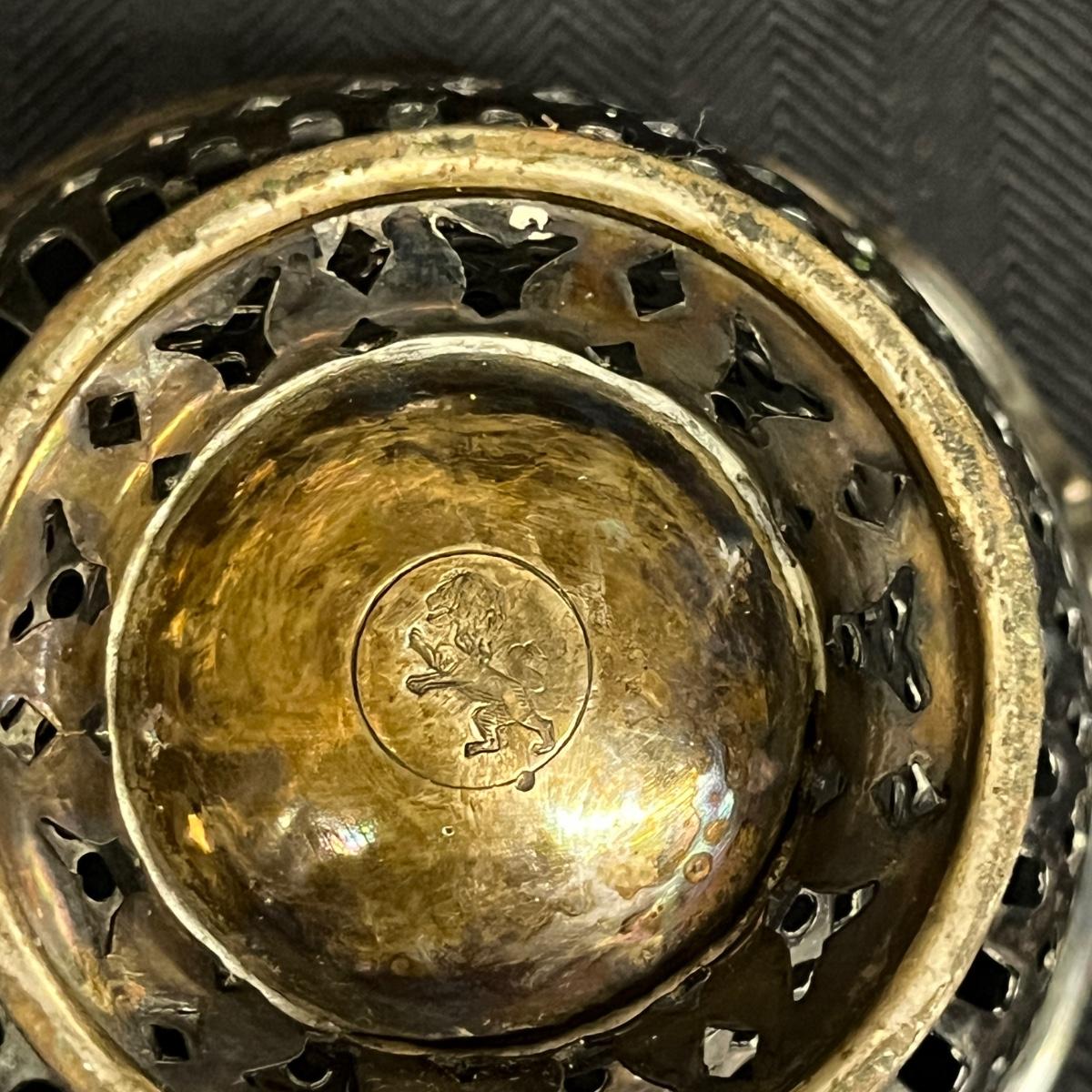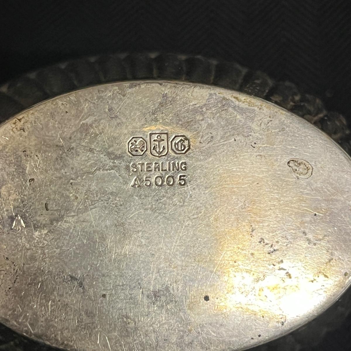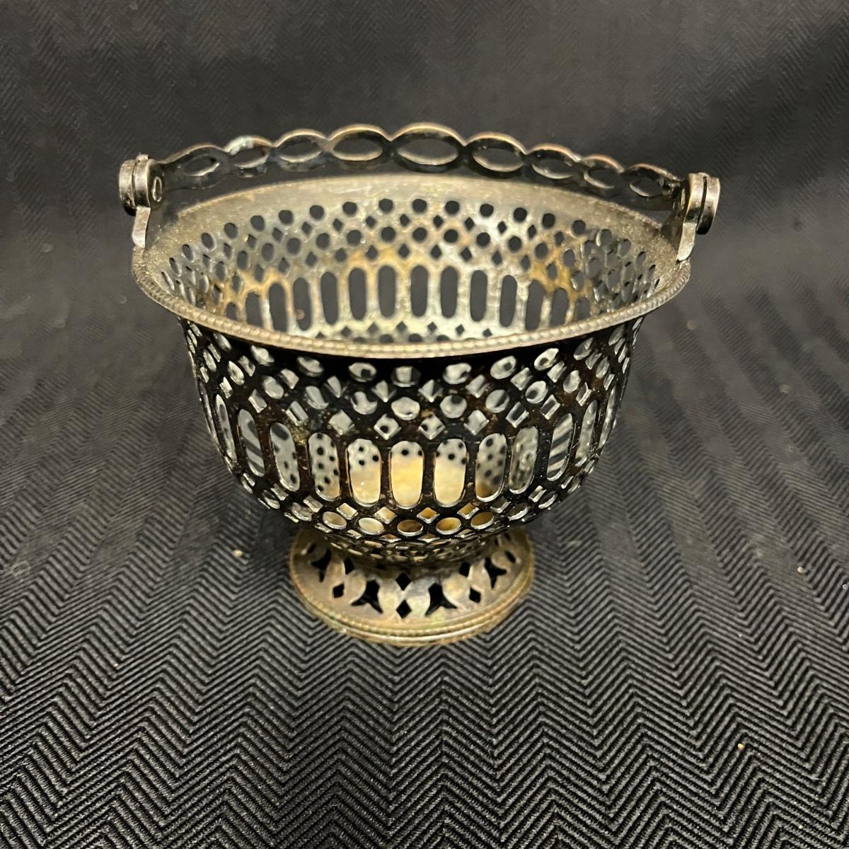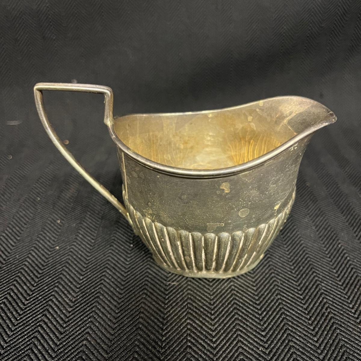 Lot includes sterling creamer and sugar bowl and a sterling dish. Also includes silver colored dish, Fortnum & Mason silver colored tea strainer and a silver colored tong. Sterling dish measures 7”D x 1.5”H.