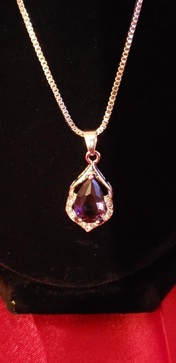 Sterling necklace and purple tourmaline pendant 25.1 g