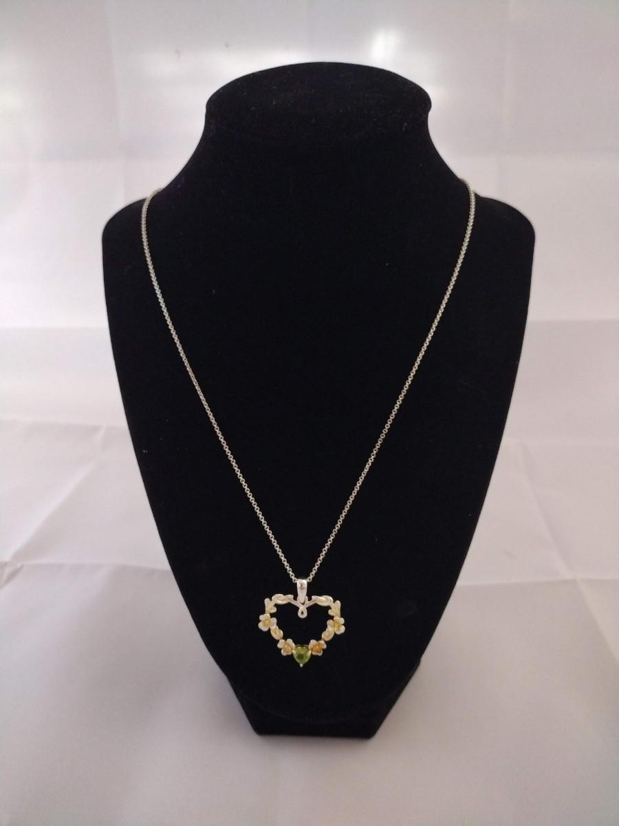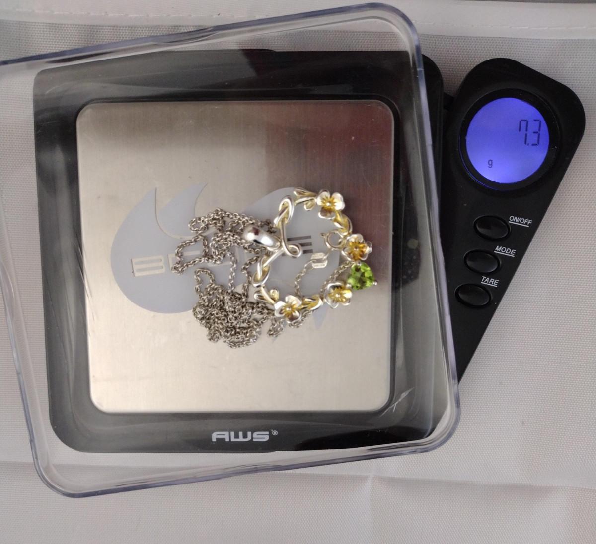 Necklace is marked 925, 20 inches. Pendant tab is marked Ireland and it has jewels in it. Total weight is 7.3 grams
