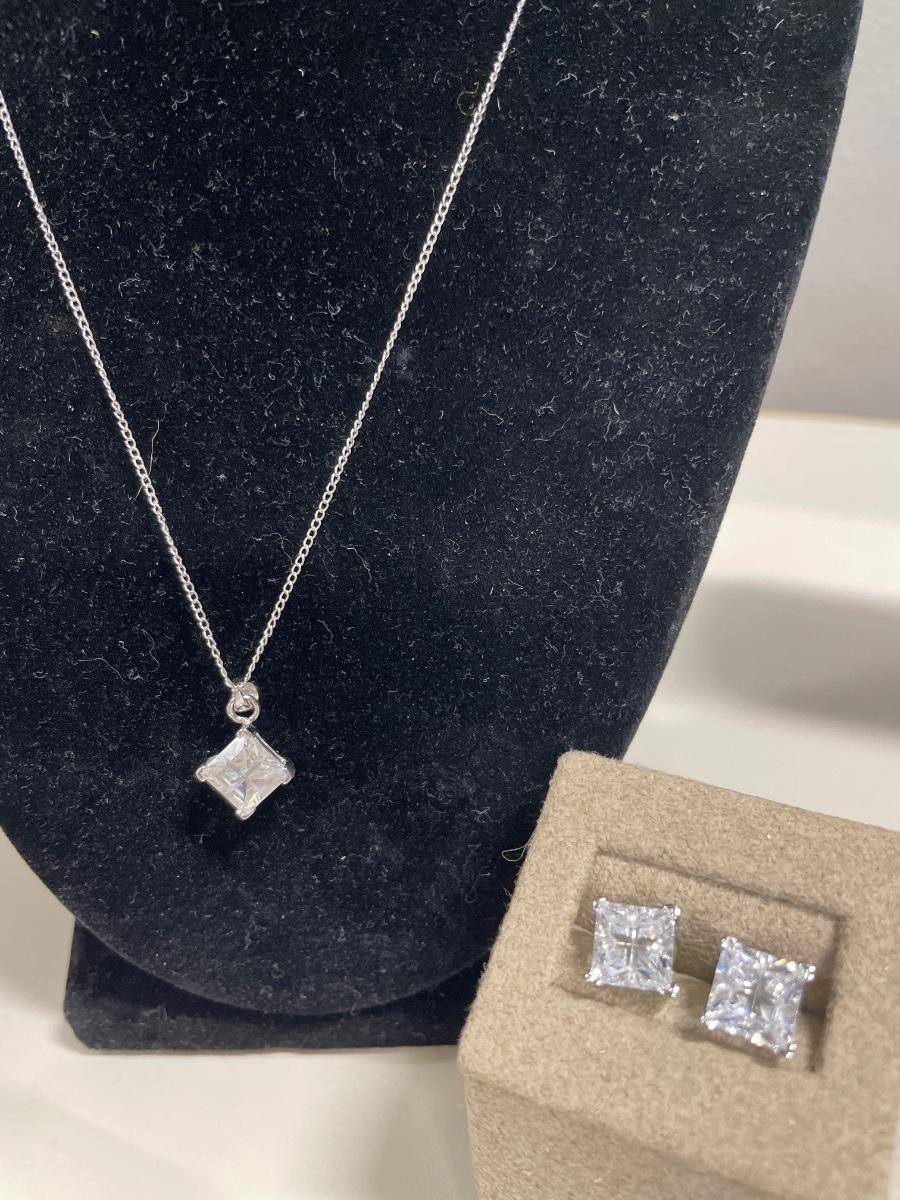Sterling necklace with sparkling pendant and matching earrings