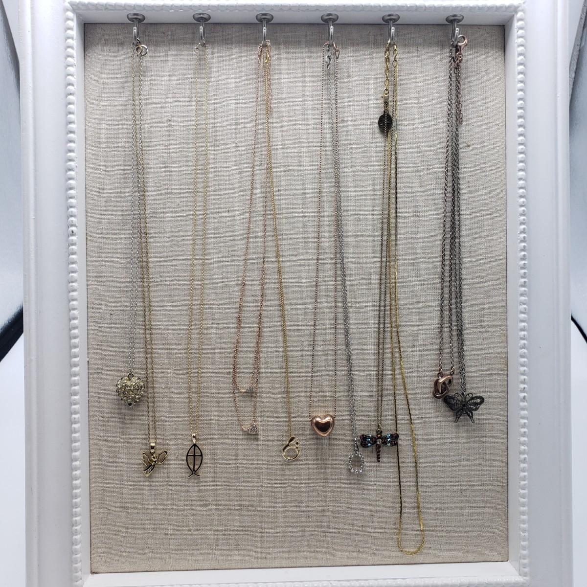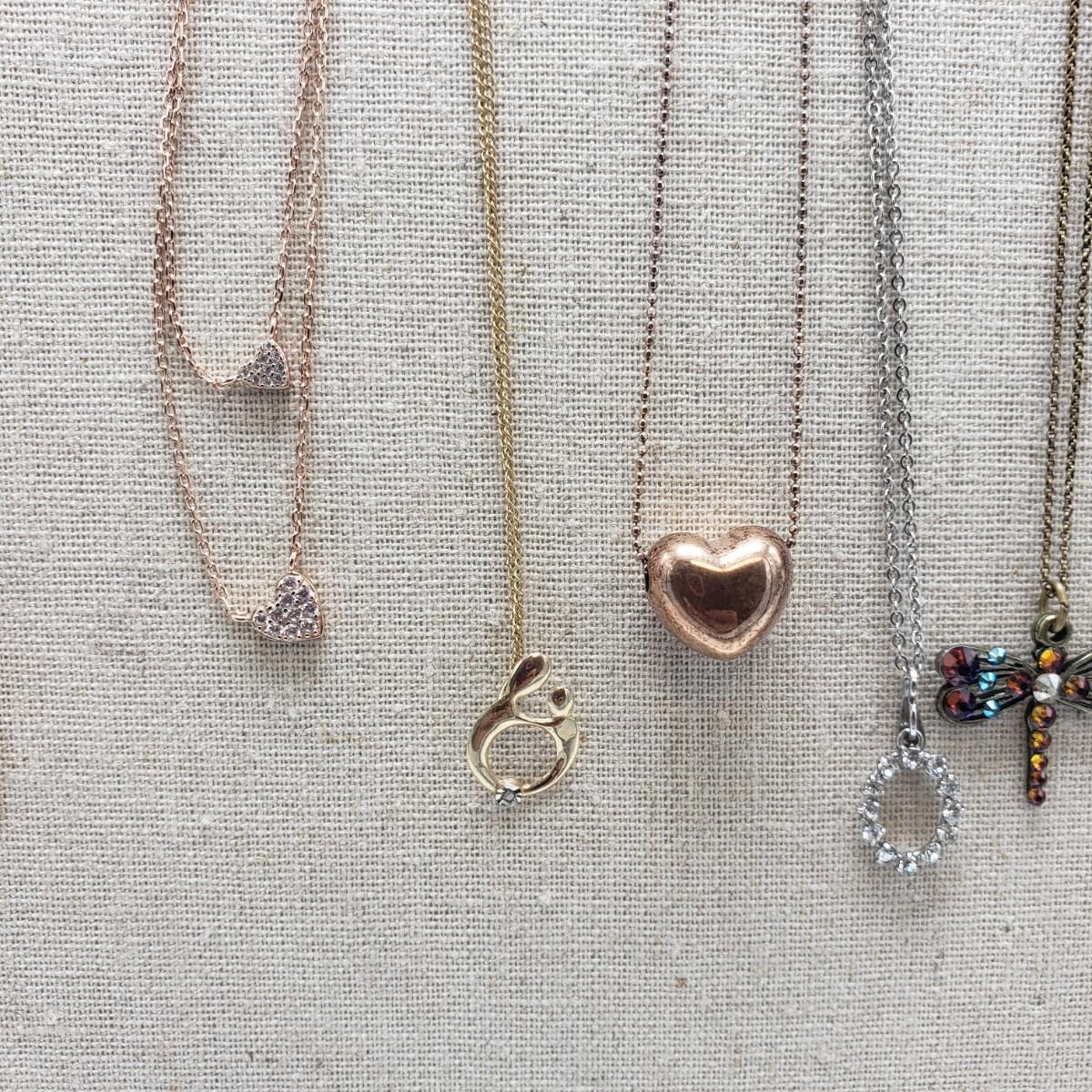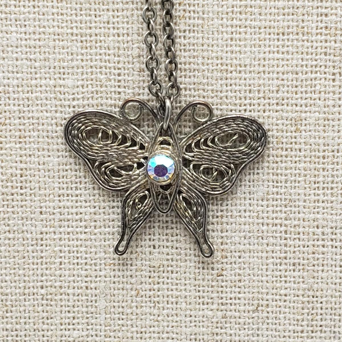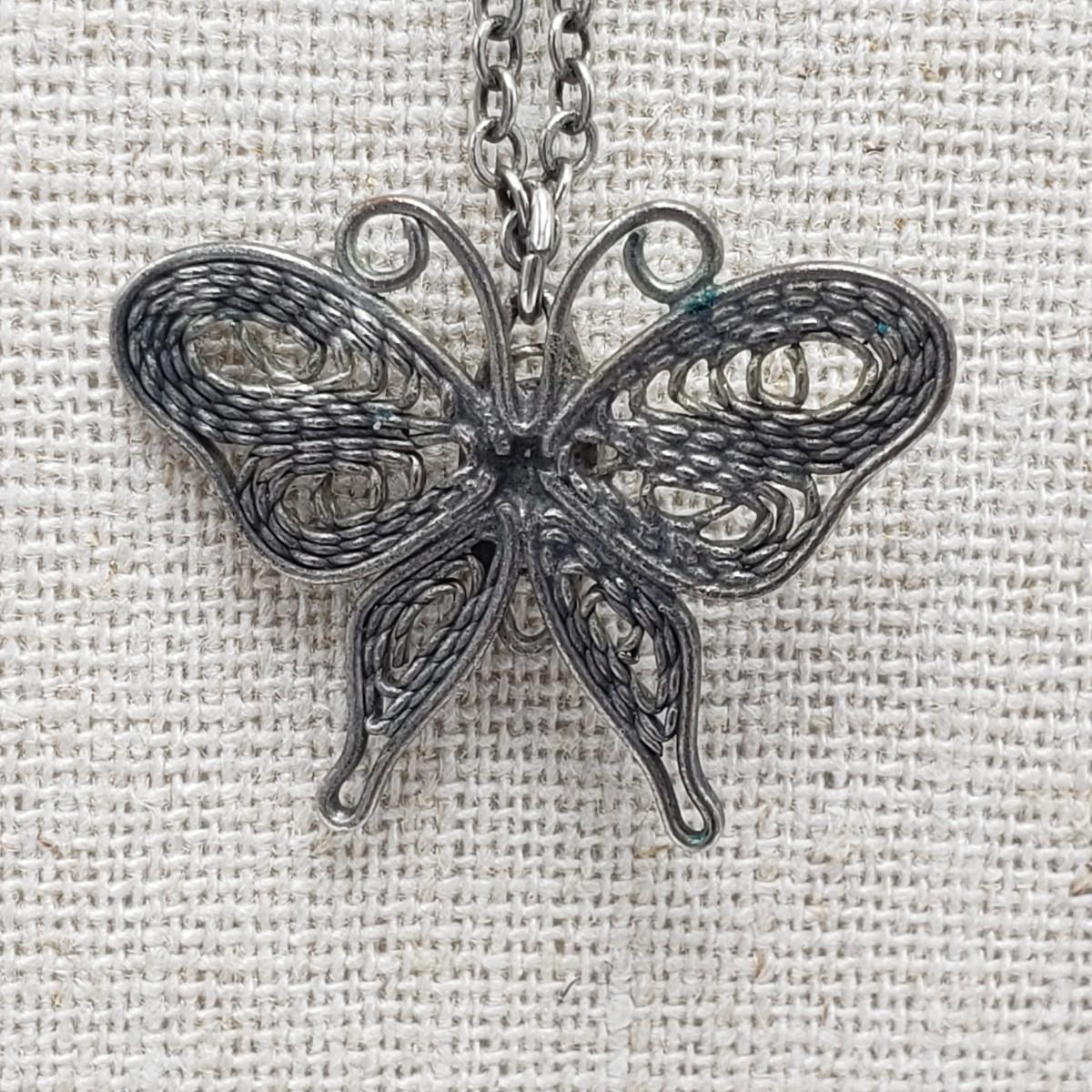 This 11 piece necklace lot features sterling necklaces with gorgeous pendants. There are five sterling stamped "925" necklaces. The angel, mother and child, two sided heart and the oval pendants contain clear stones. The Mother and Child has "RL 10K" stamped on the pendant. The chain for this pendant is stamped, "RL 1/20/14K GF". The filigree on the butterfly in the last pictures is so delicate.