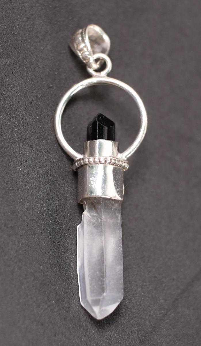 Sterling Onyx & Raw Quartz Pendant. Stamped 925. Measures approx. 2". Weighs approx. 6 grams.