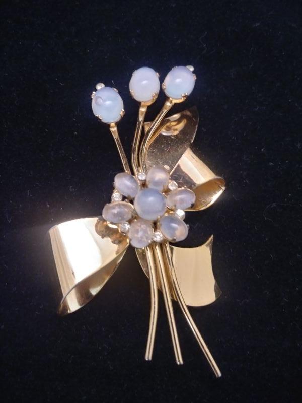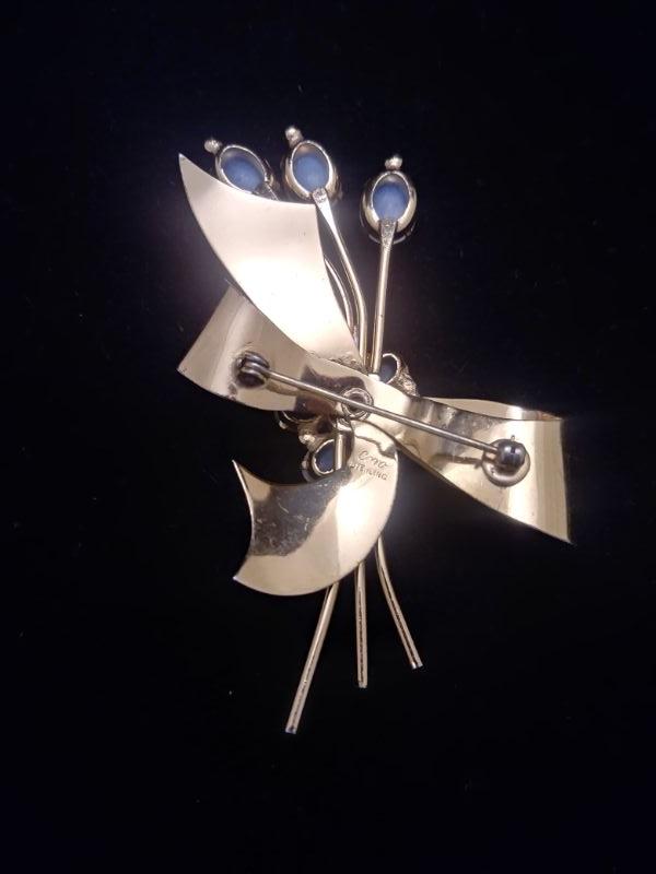 Sterling/ Opal Flowers Tied with a Bow Coro Brooch 3"L x 2"W