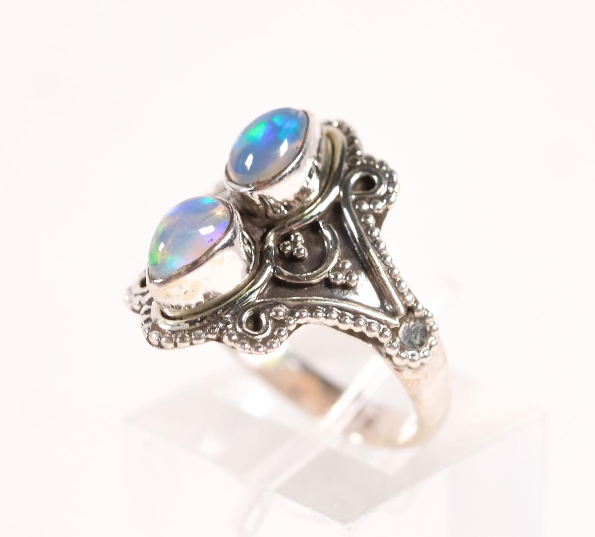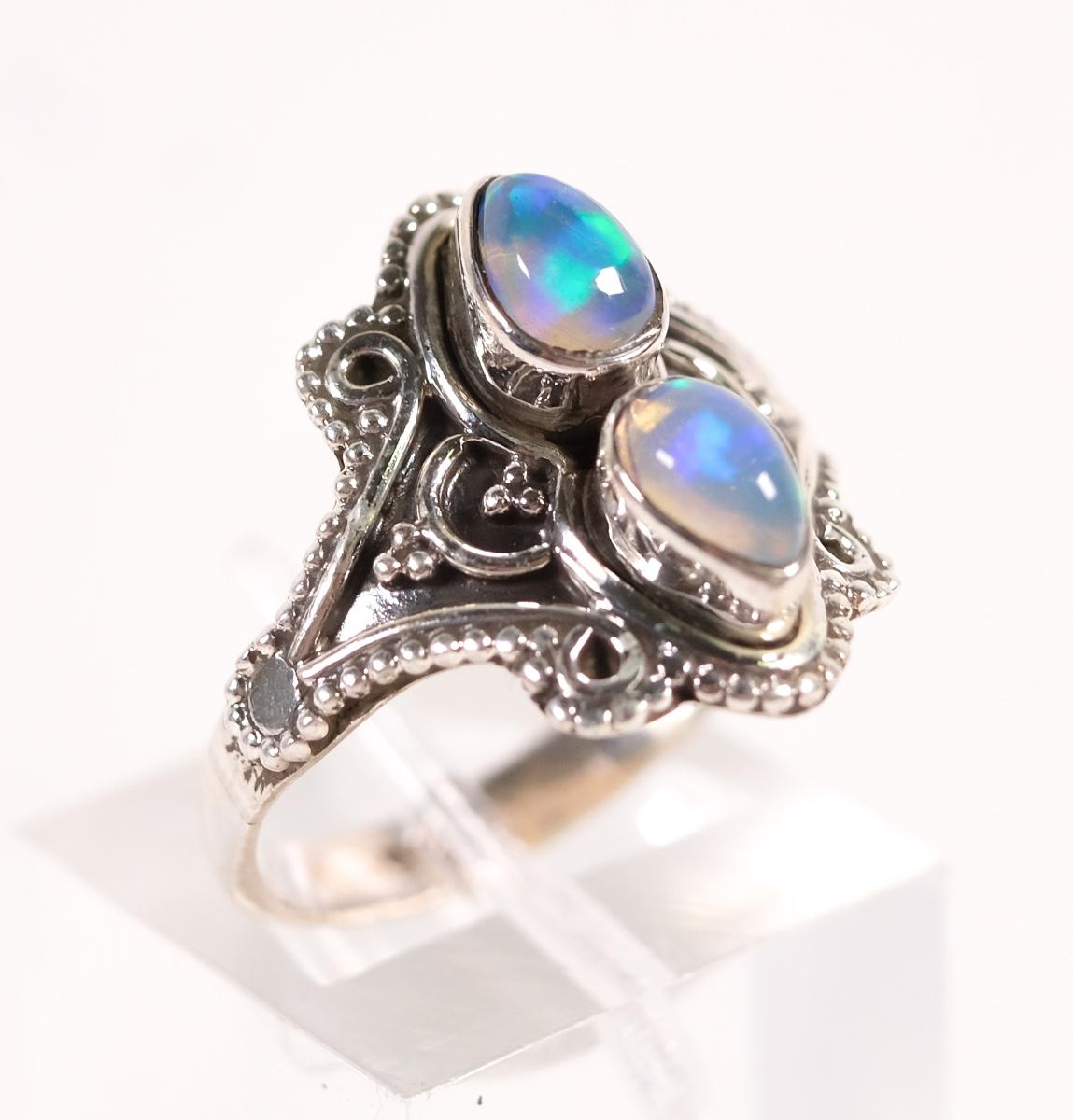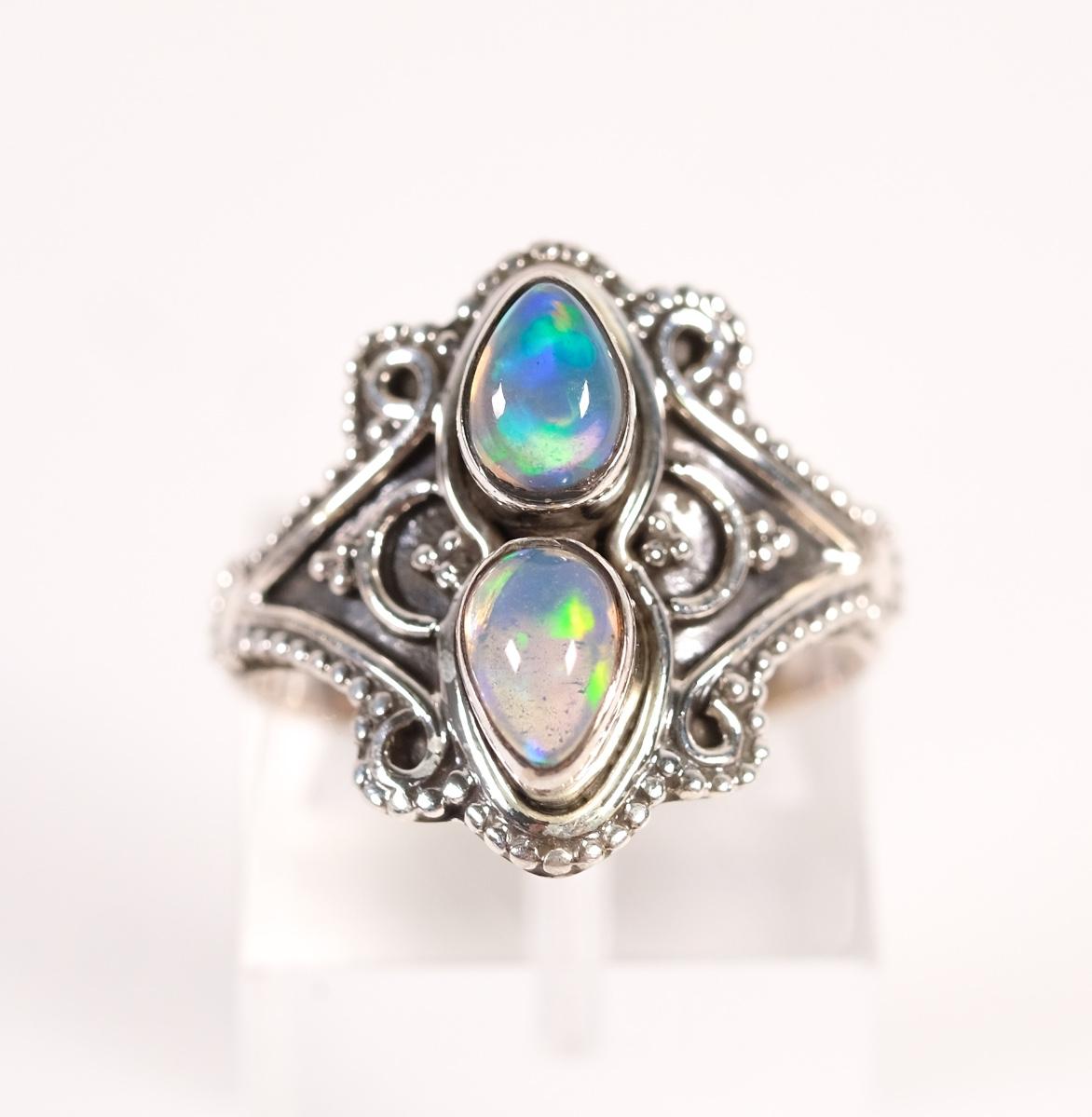Sterling Opal Gemstone Ring. Size 6.5. Stamped 925. weighs approx. 3.3 grams.