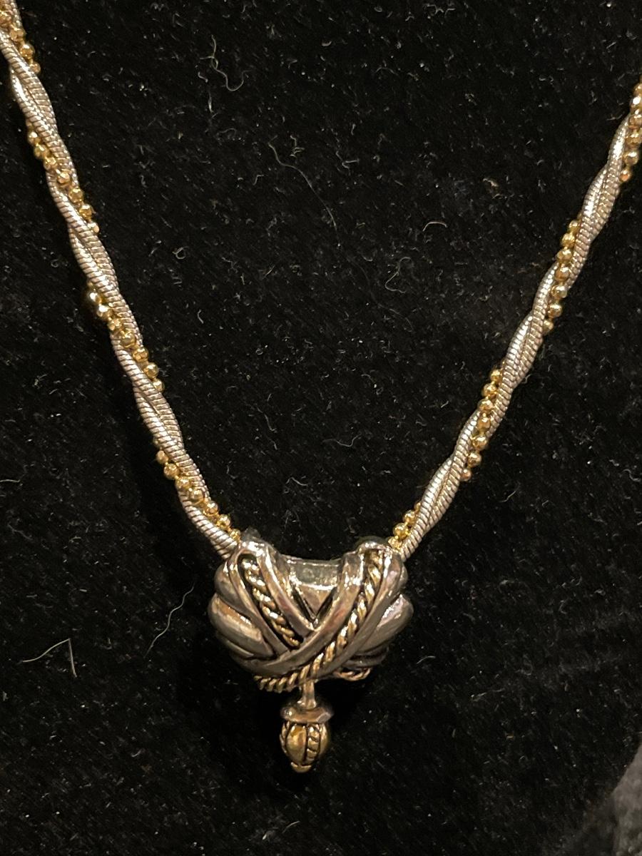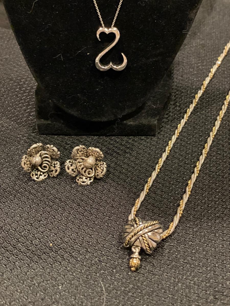 Sterling open heart necklace with sterling clip ons and gold and silver tone necklace