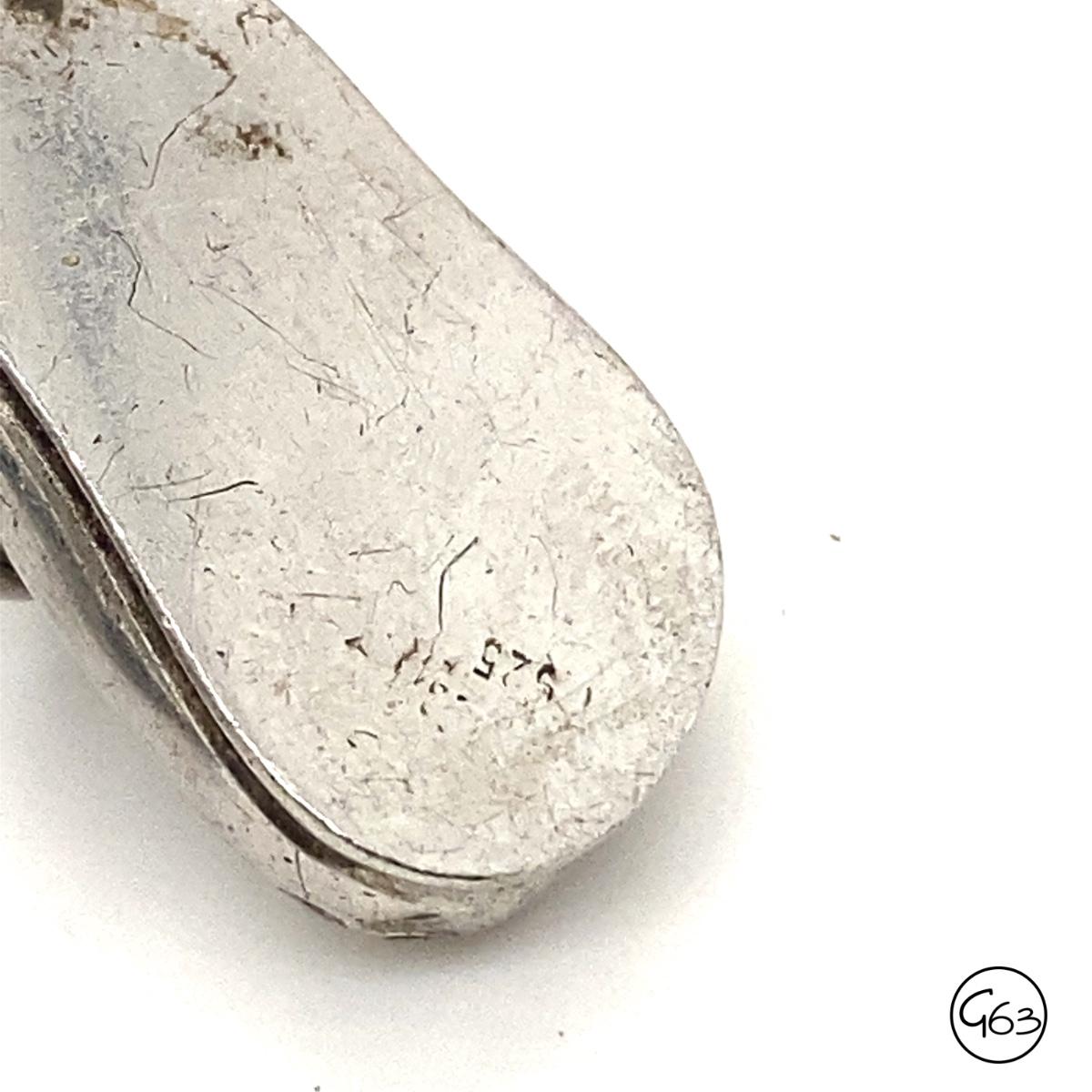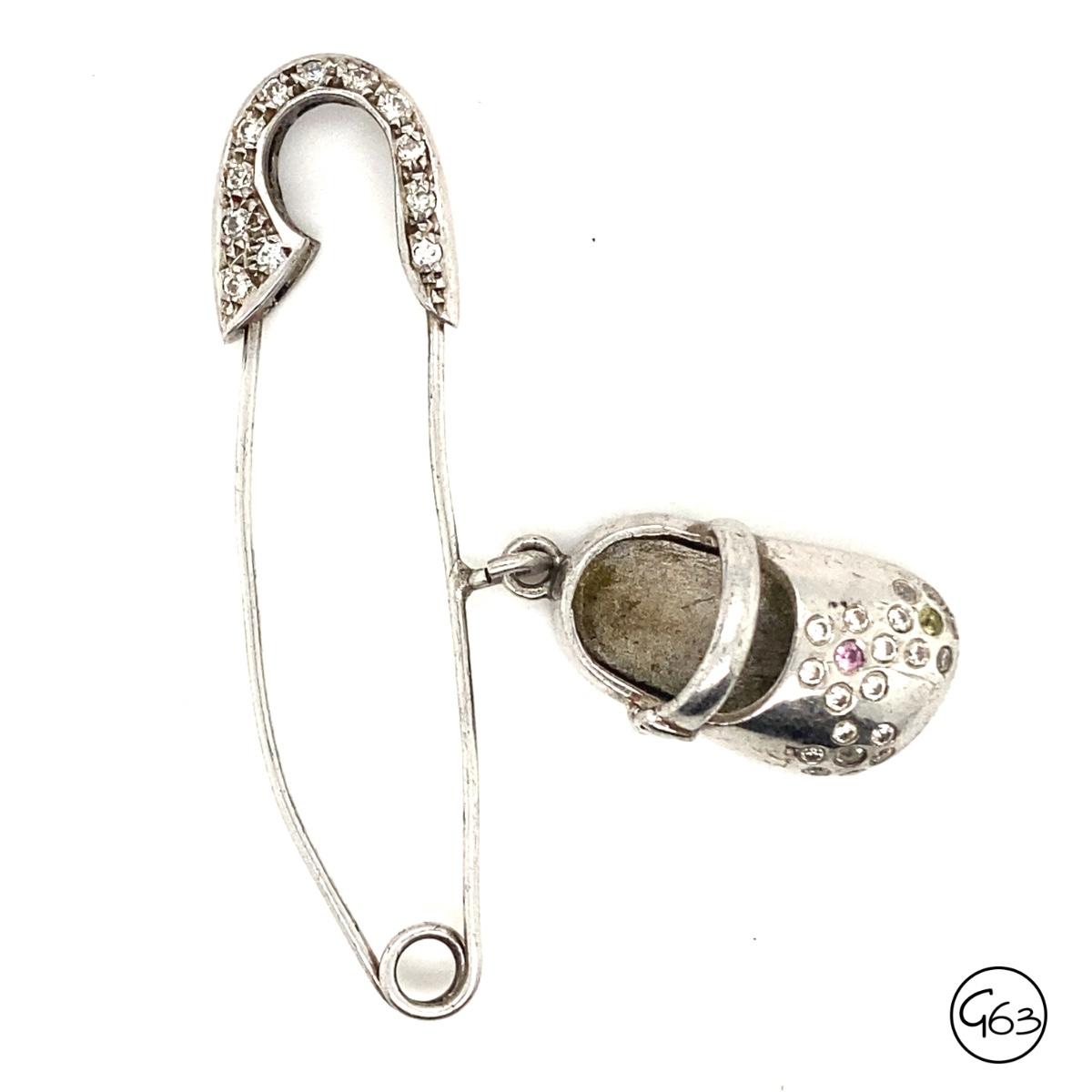 Stamped 925 on shoe. Pin measures approx. 2.25", shoe measures approx. 3/4". Total approx. weight 10.7g.