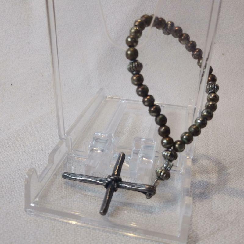 Sterling Pocket Cross with Sterling Beads