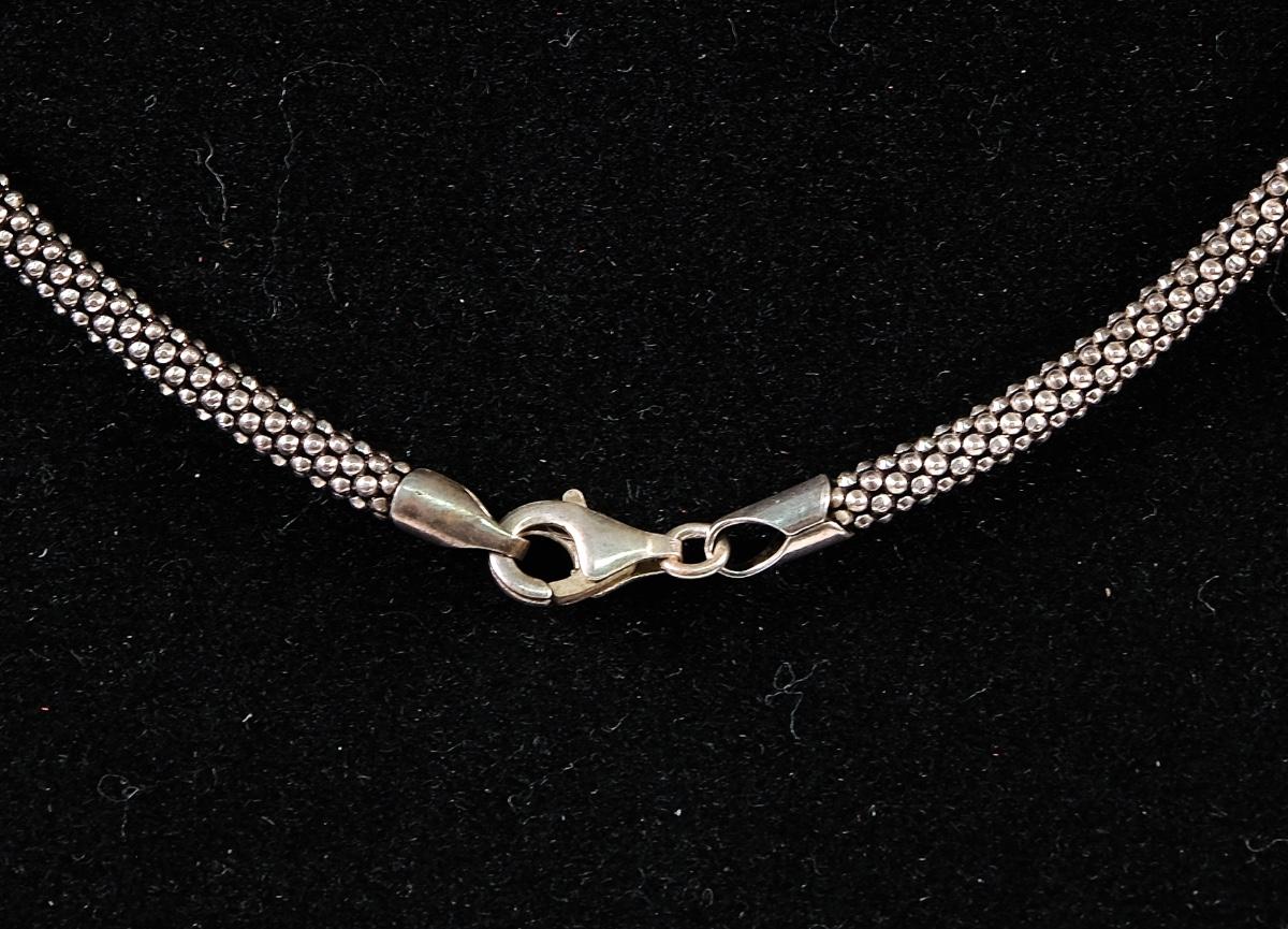 Sterling popcorn chain necklace. Stamped 925. Measures approx. 19.25" with a 3.18 mm width. Weighs approx. 9 grams.