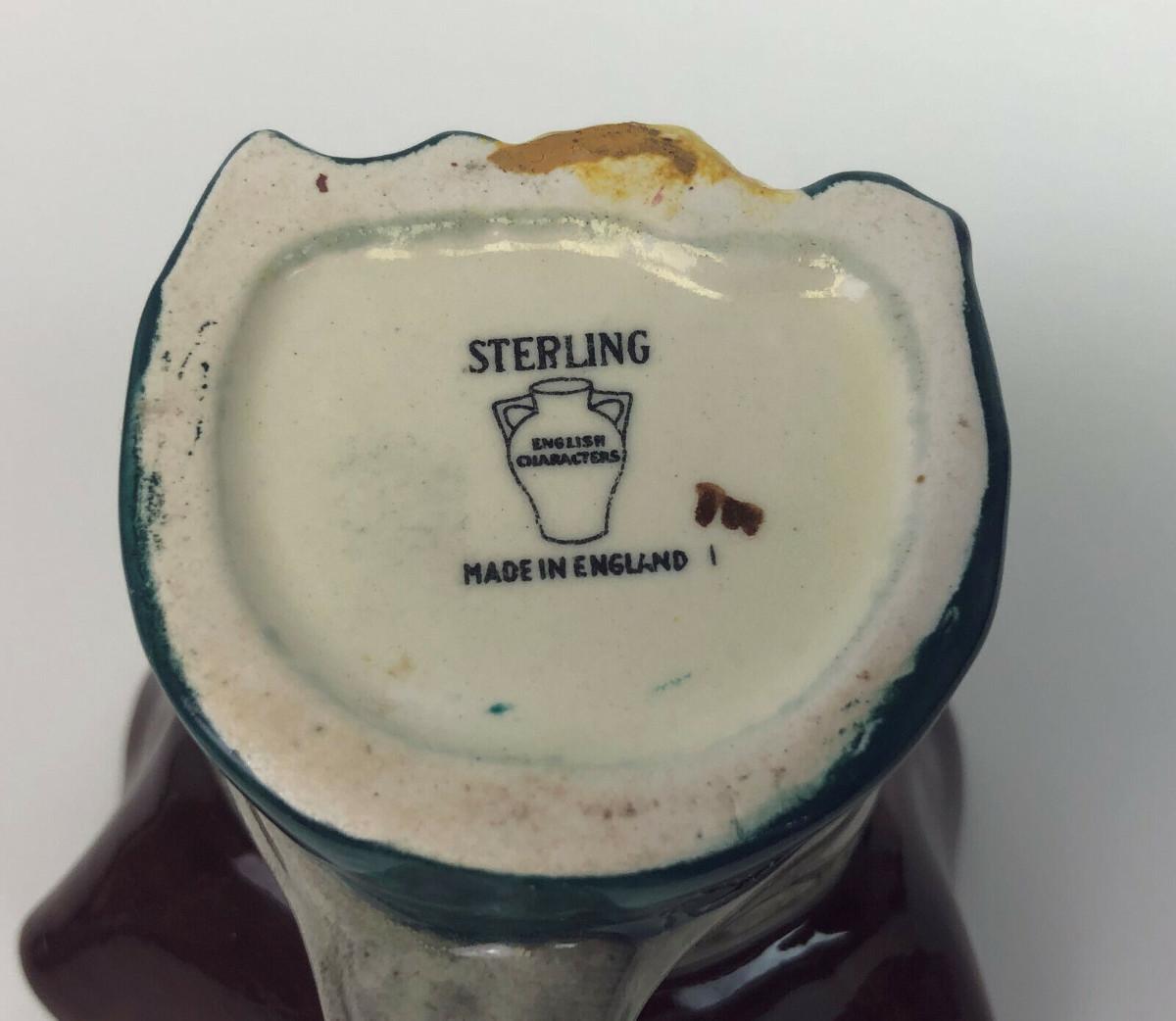 With a hallmark used from the late 1940's here is a small 3.25" tall Toby Jug from the (Ridgway)Sterling Pottery...one of the English Characters series..Capt. Patch...possibly designed by Cooper Clayton? Very good condition..no chips or cracks to report.