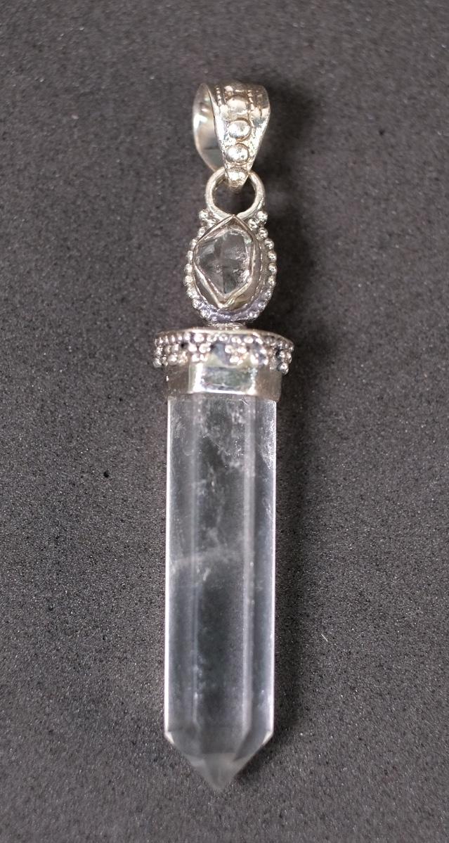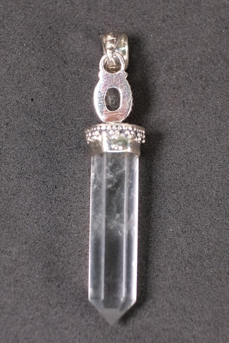 Sterling Quartz Point Pendant. Stamped 925. Measures approx. 2". Weighs approx. 6.2 grams