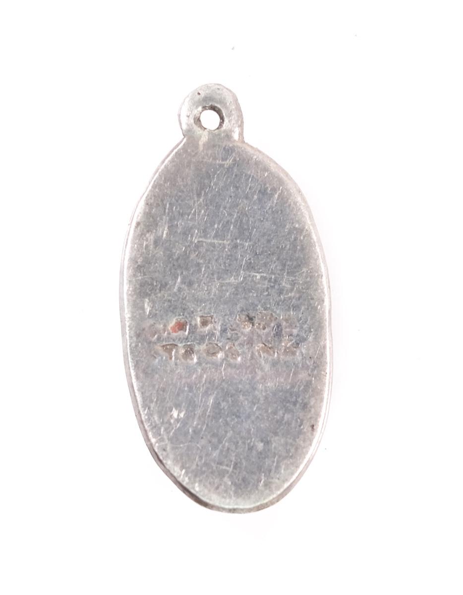 Sterling red enameled Mekkala goddess pendant. Illegible stamp. Measures approx. 0.75". Weighs approx. 0.8grams.