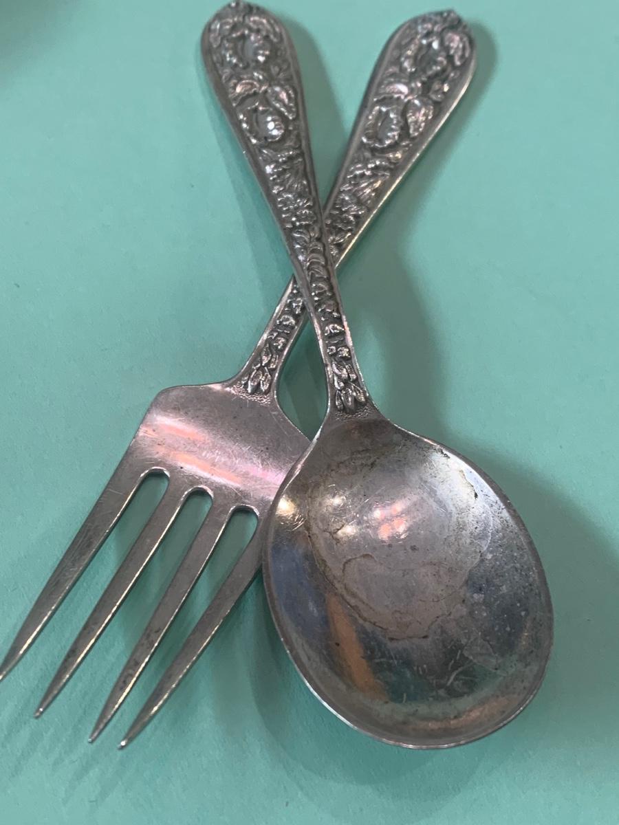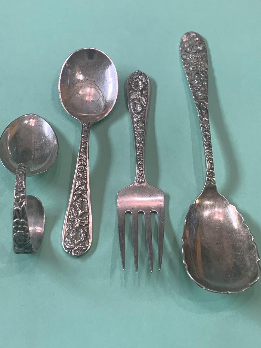 Sterling Repousse Childs Fork & Spoon + Others