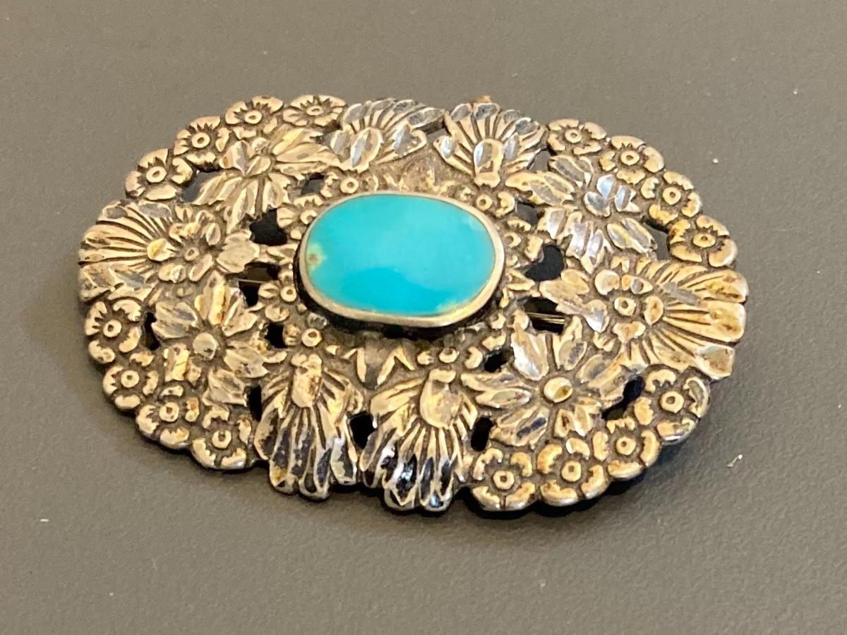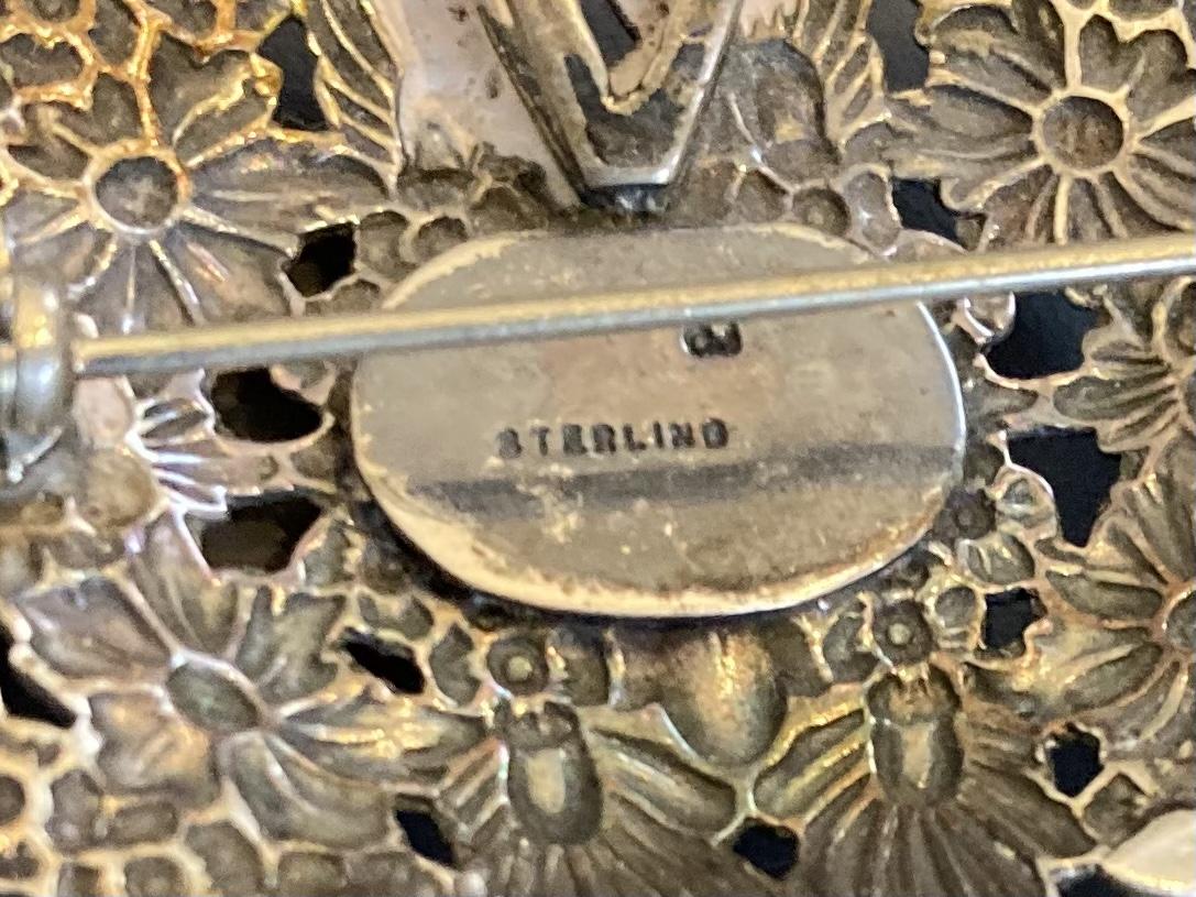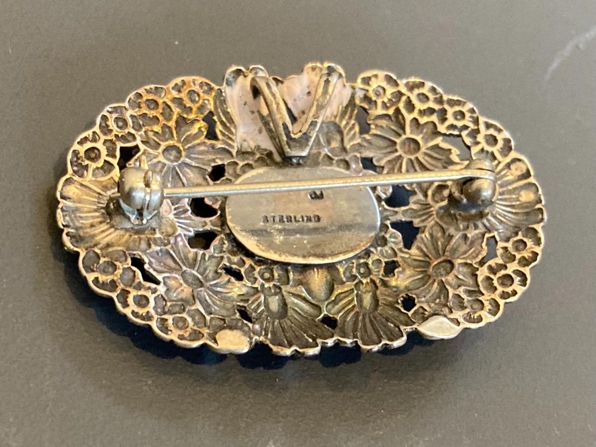 Sterling Repousse Stlye Vintage Pin Brooch 7 grams