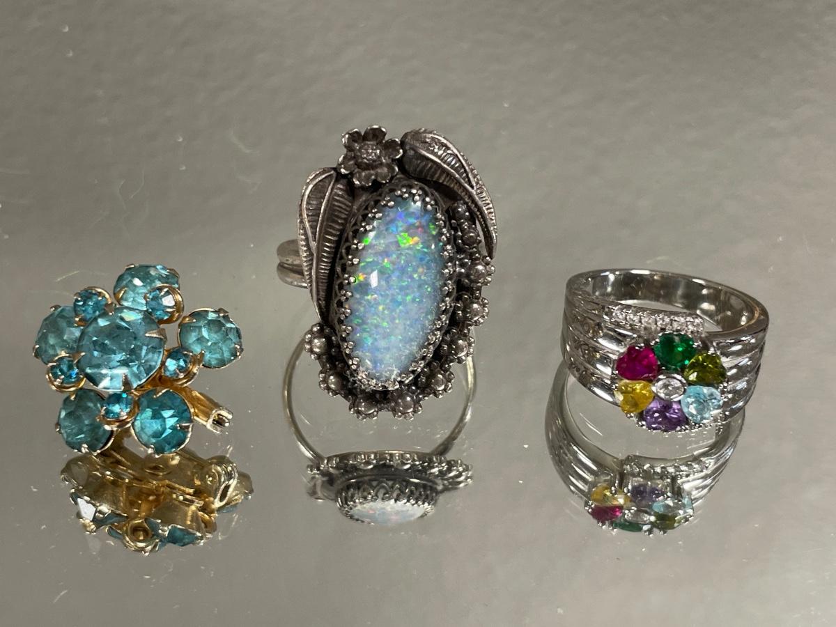 Sterling rings and small blue pin