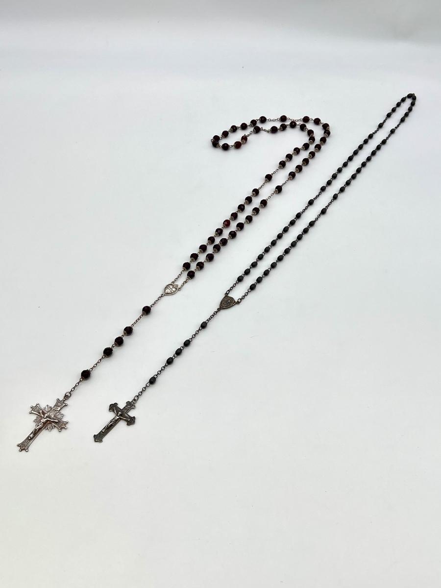 Two (2) Sterling Silver (925) ~ Beaded Rosary Necklaces