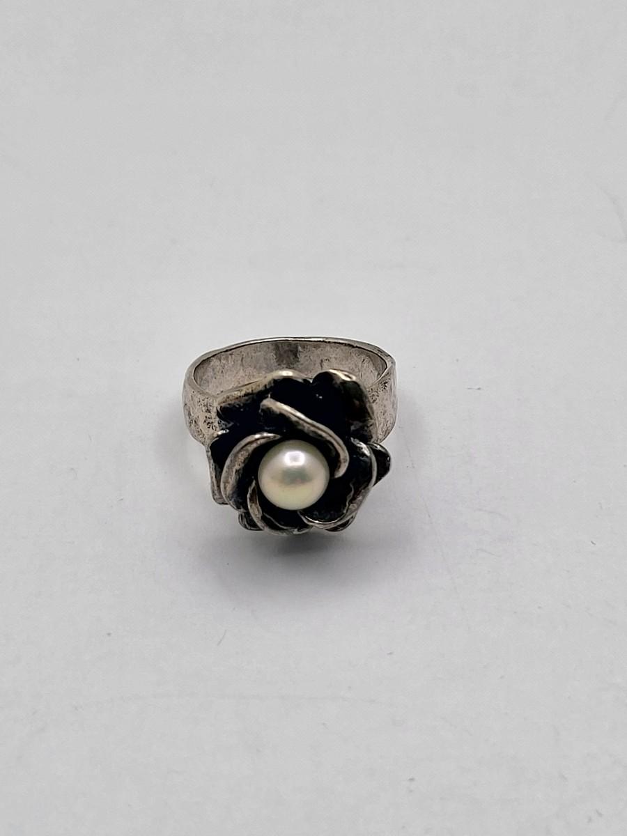 Sterling Rose & Genuine Pearl Ring 7.1gr