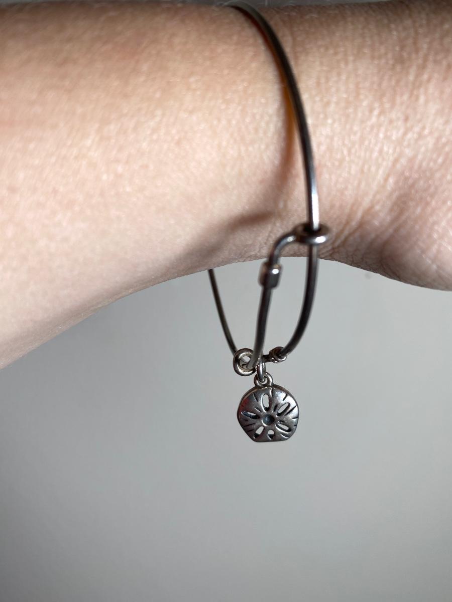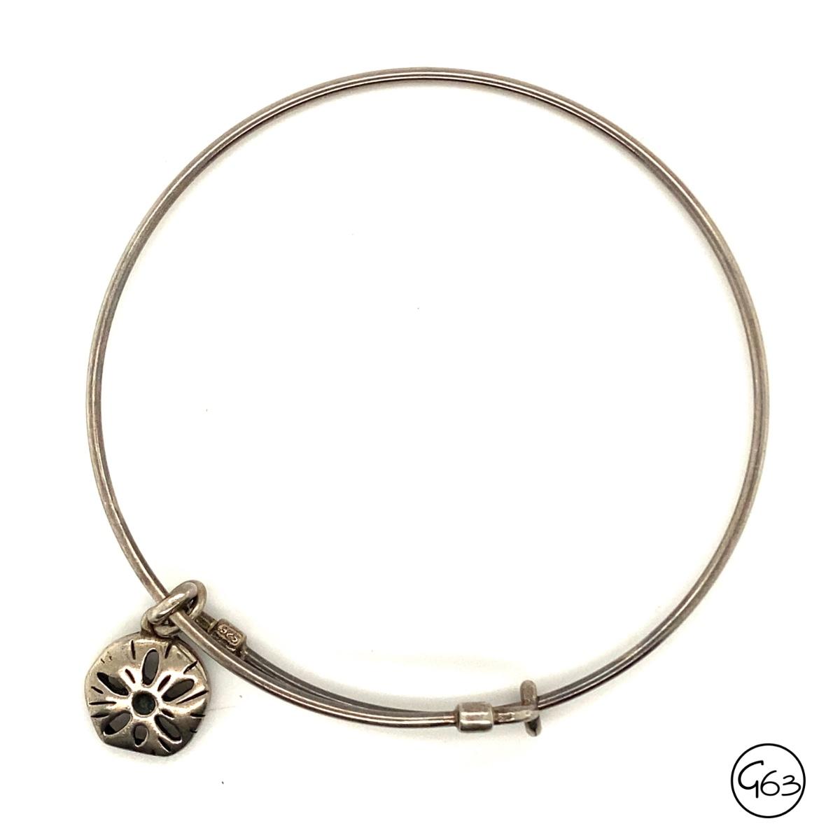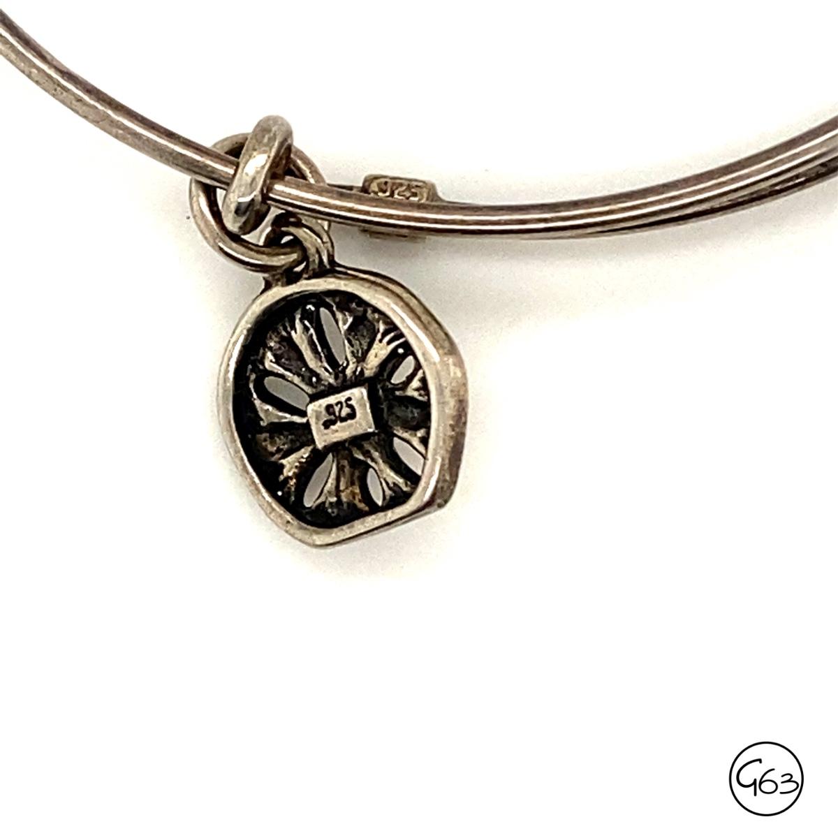 Stamped 925. Adjustable size, Measures approx. 2.5" inner diameter. Weighs approx. 6.9grams.