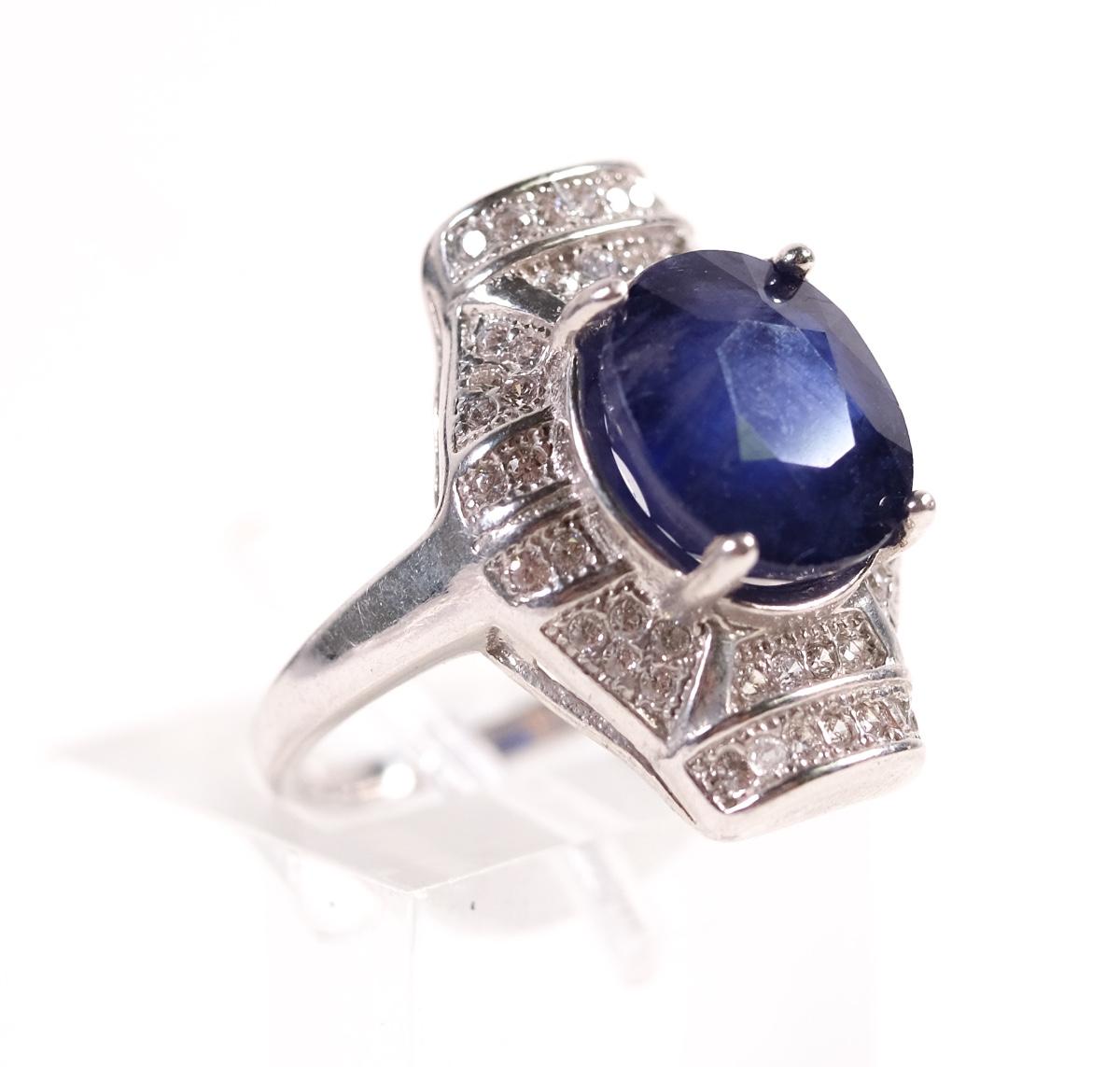 Sterling Sapphire & CZ Ring. Size 5.75. Stamped 925. Weighs approx. 5 grams.