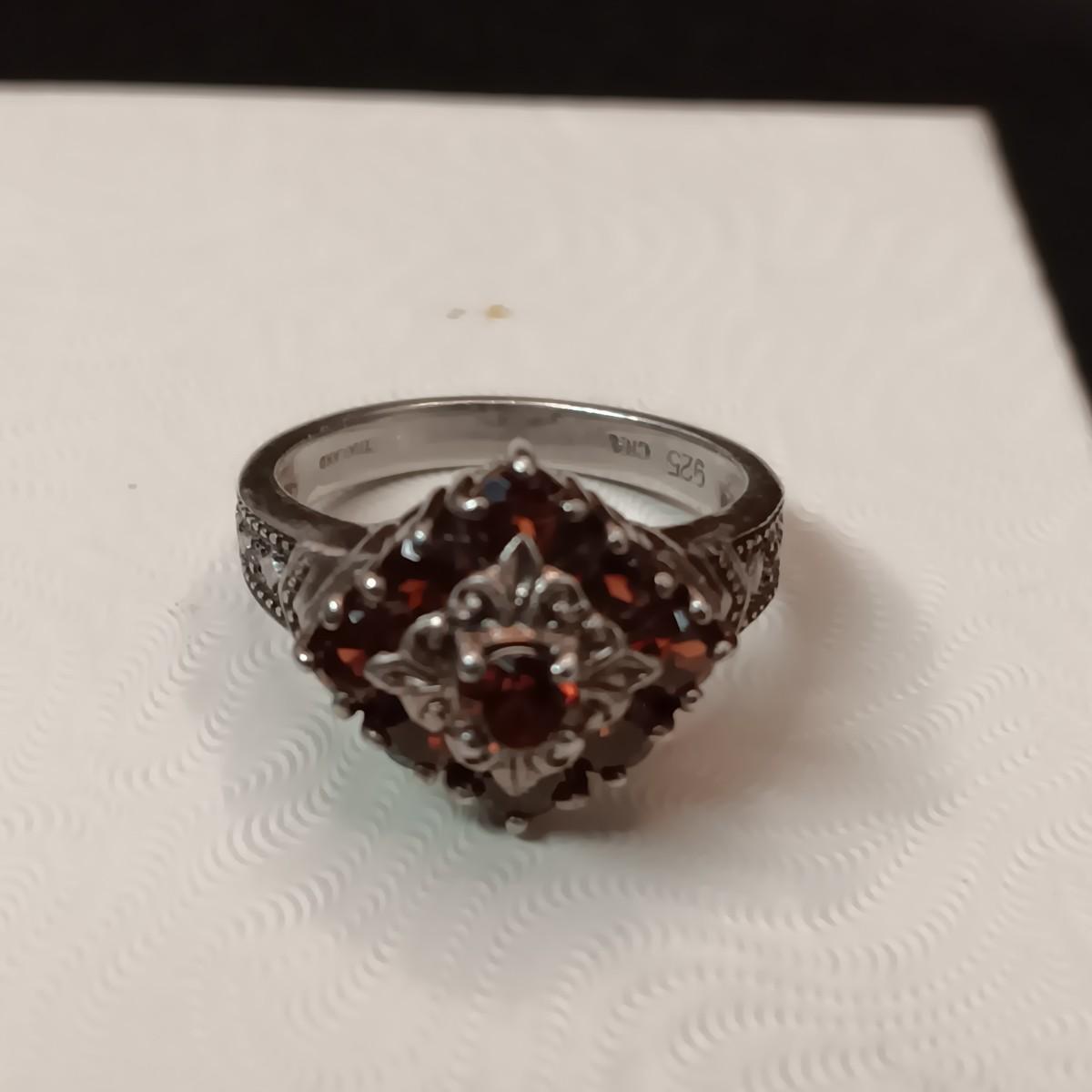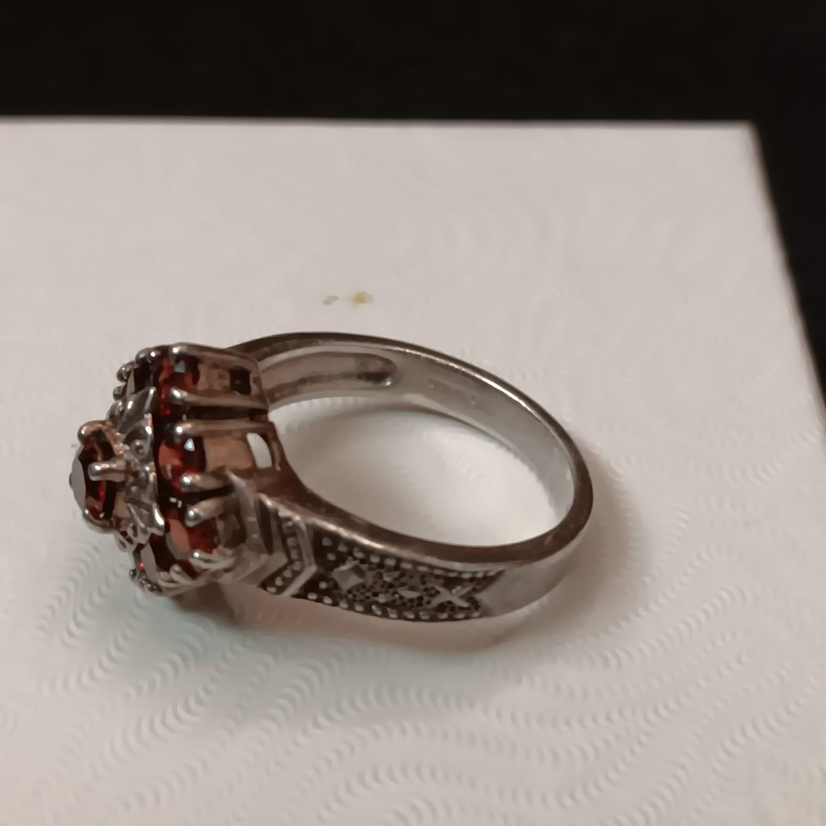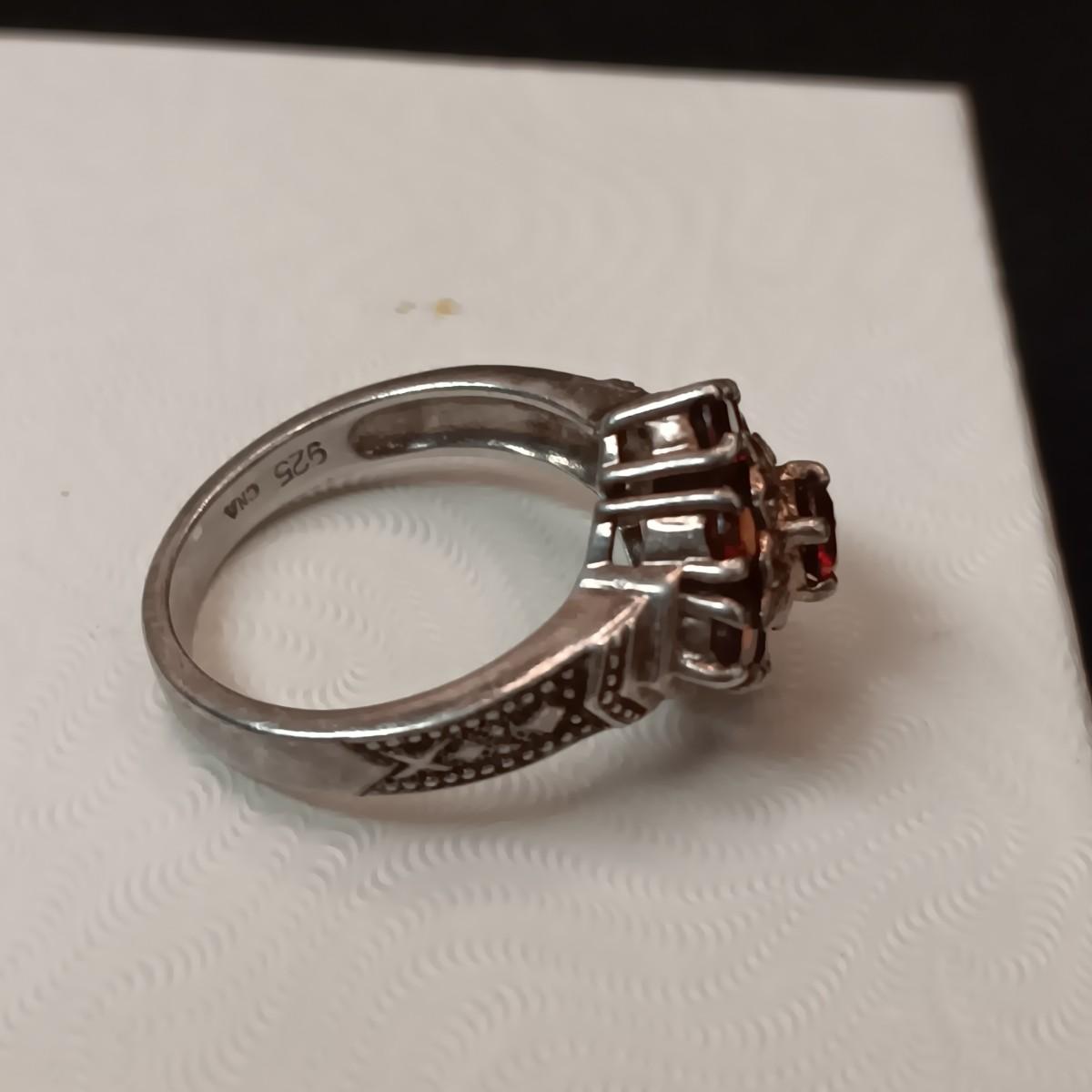 STERLING SILVER RING WITH GARNETS 5.70g SIZE 7 1/2 MARKED CNA