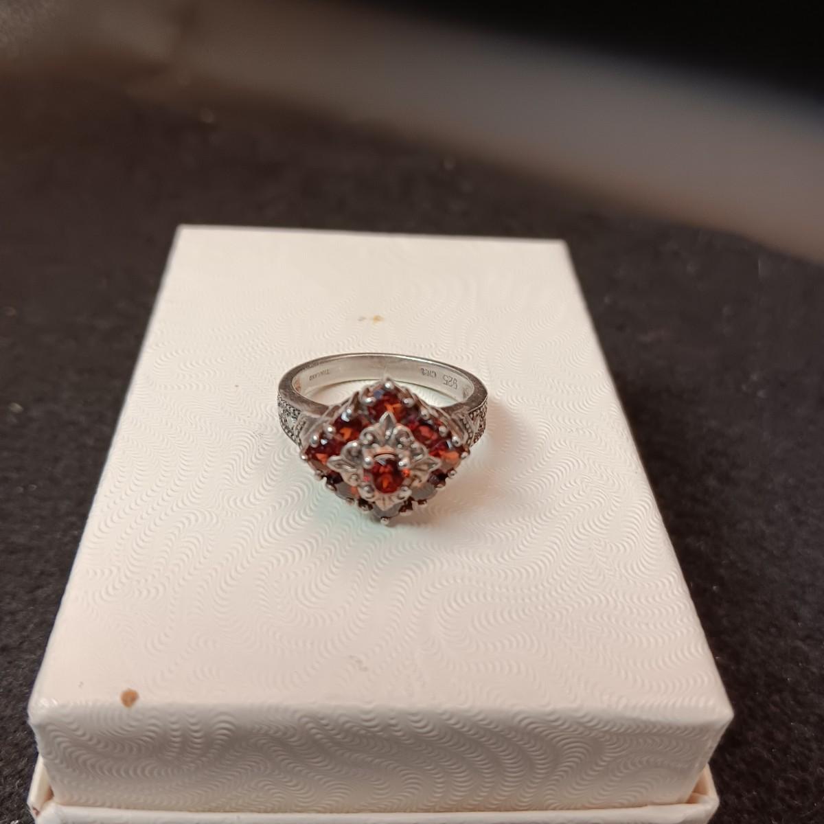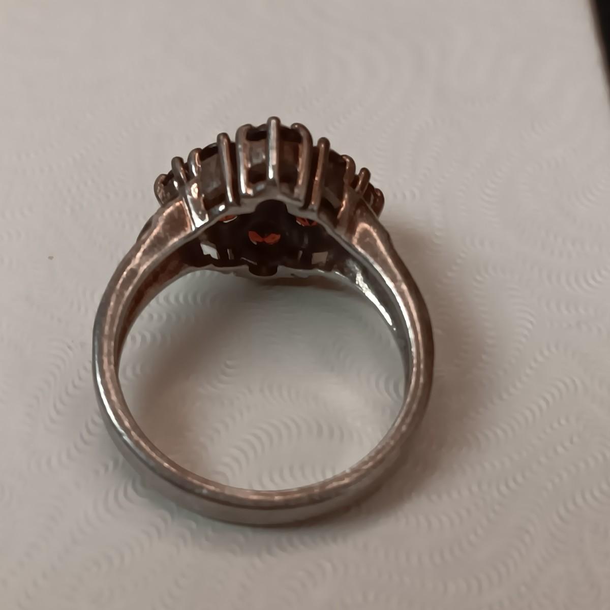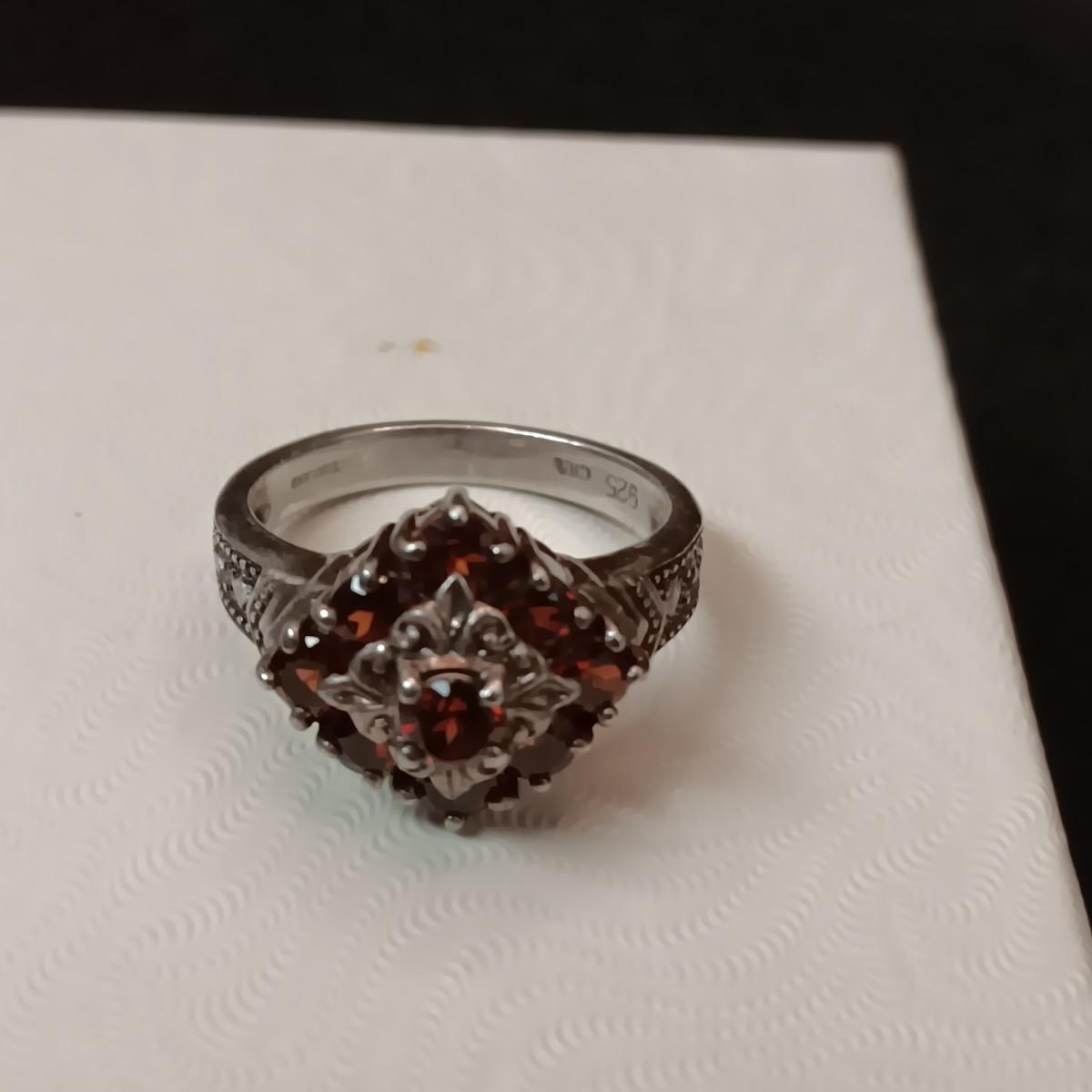 STERLING SILVER RING WITH GARNETS 5.70g SIZE 7 1/2 MARKED CNA