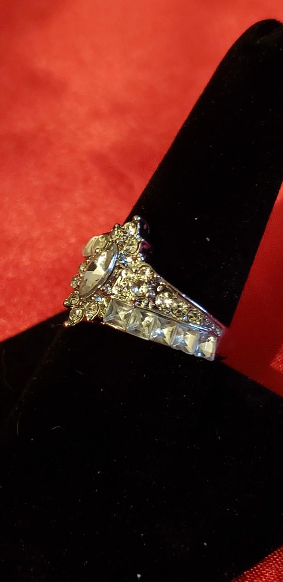 Sterling silver white sapphire 18 k gold plate ring size 8