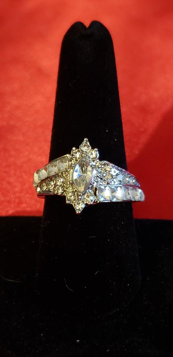Sterling silver  white sapphire  18 k gold plate ring size 8