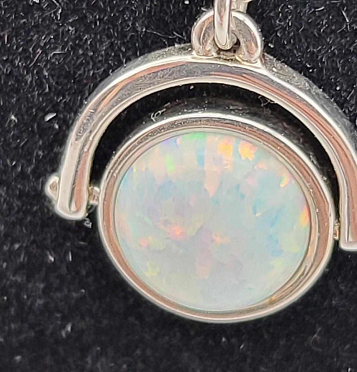 Sterling Silver 2 Sided Opal and Rhinestone Necklace