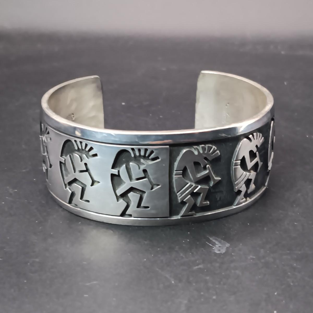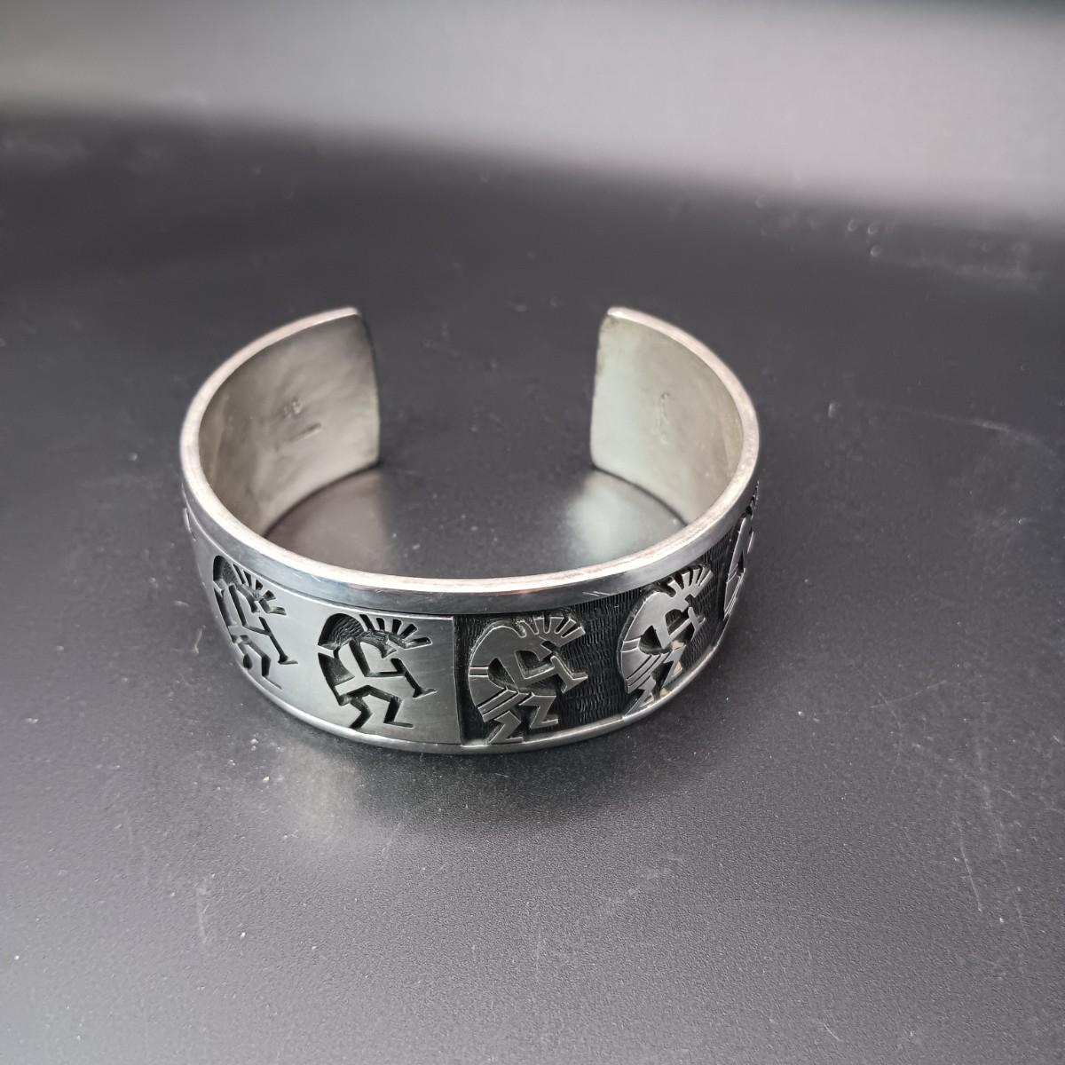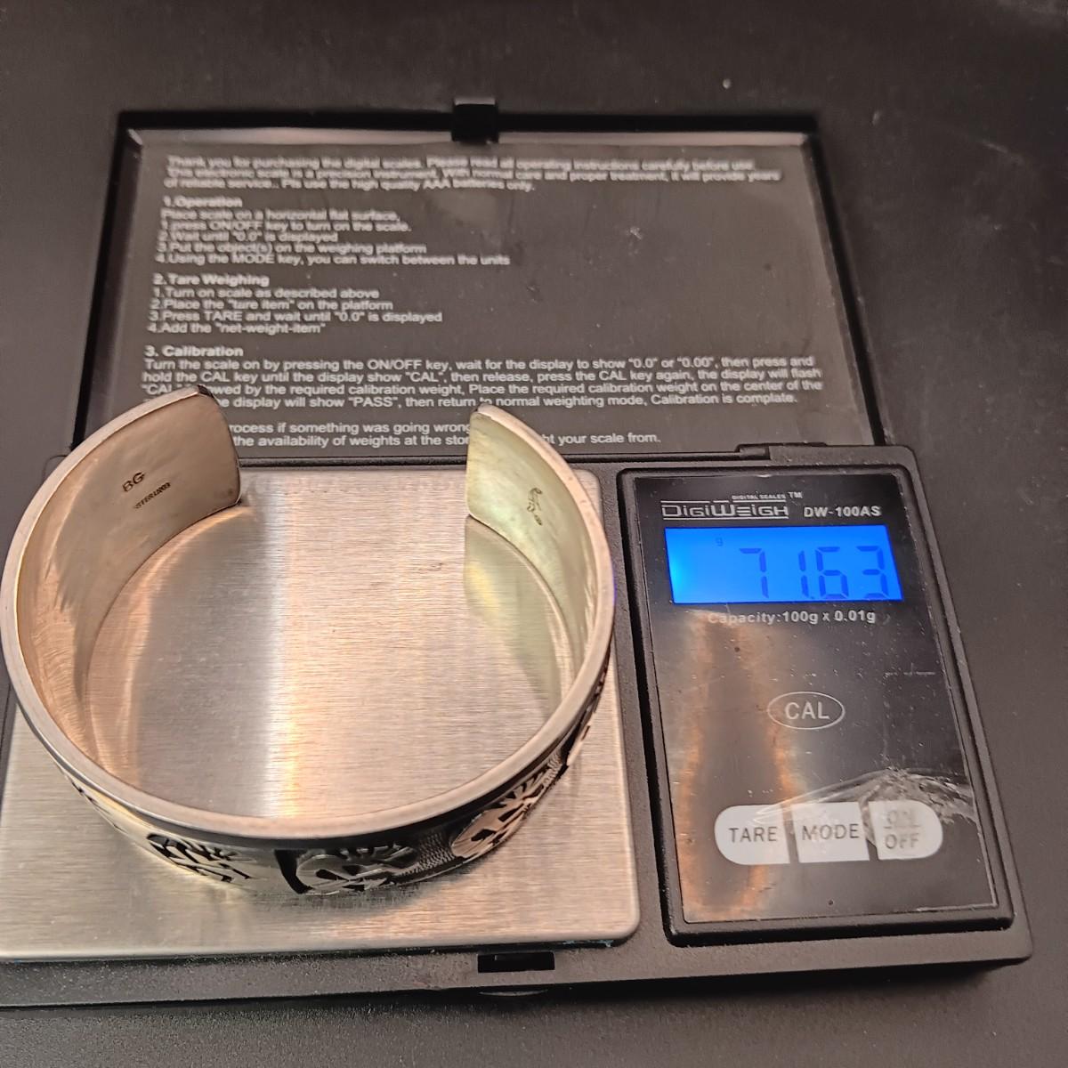 STERLING SILVER 2 TONE CUFF BRACELET MARKED "BG" 71.63g