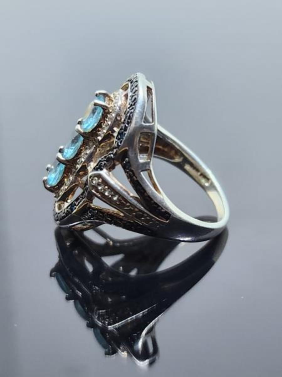 Sterling Silver 3 Green Stones- Art Deco Ring size 7