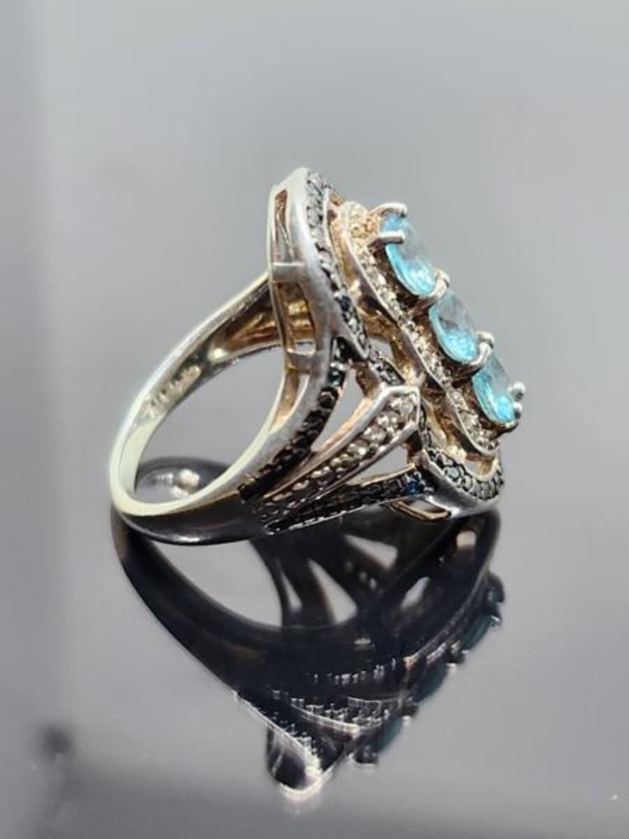 Sterling Silver 3 Green Stones- Art Deco Ring size 7