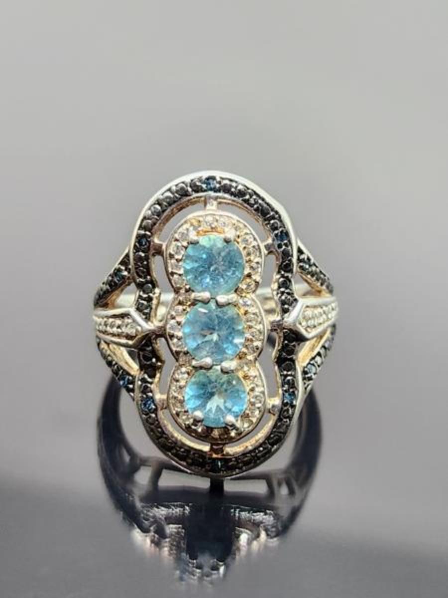 Sterling Silver 3 Green Stones- Art Deco Ring