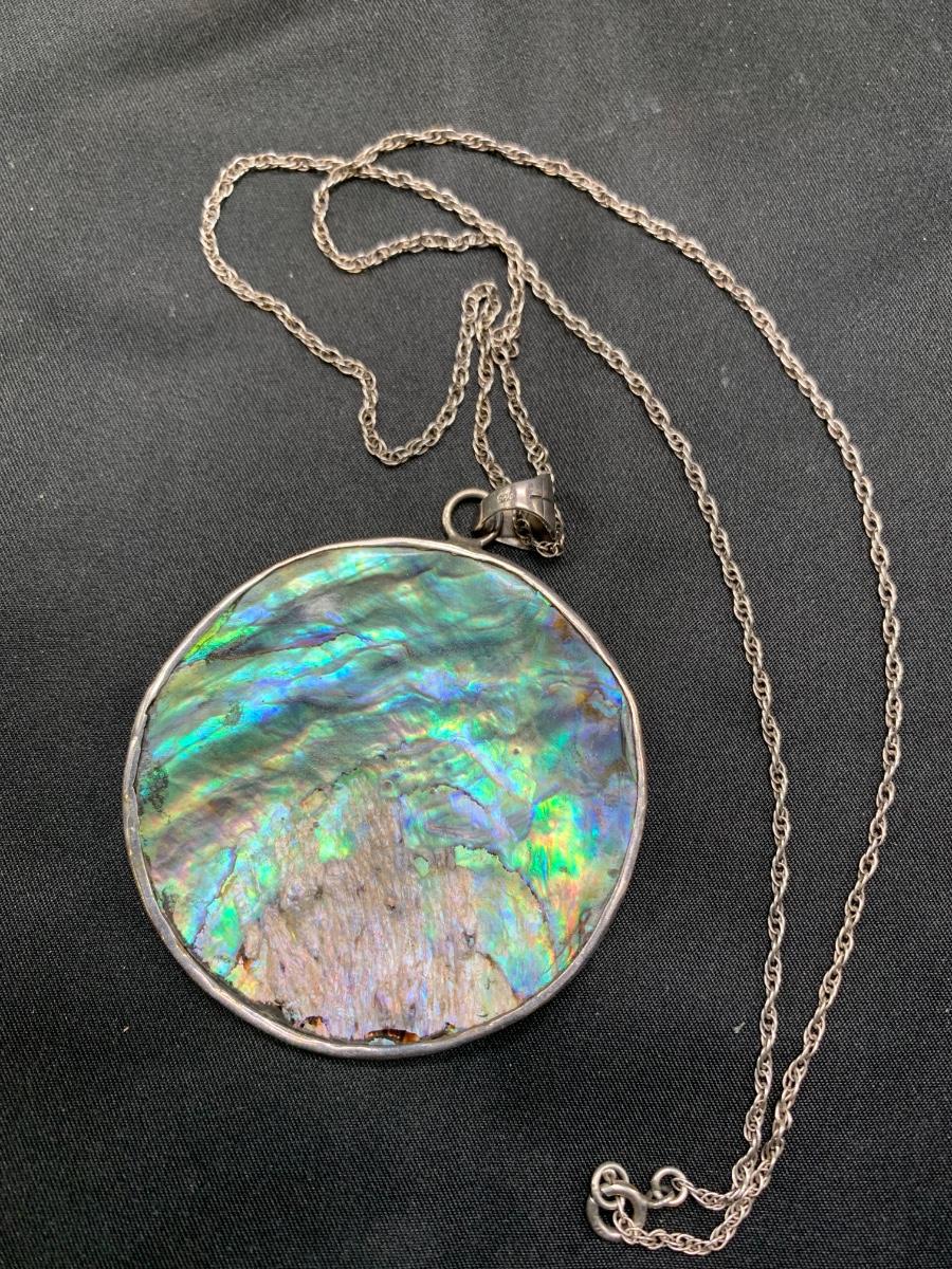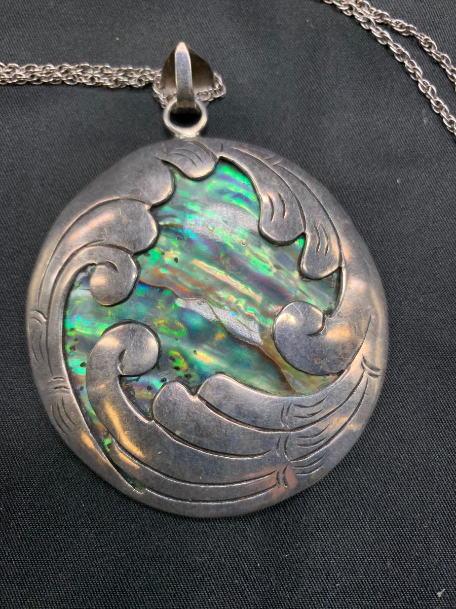 Large sterling and mother of pearl pendant 2.5 inches with chain