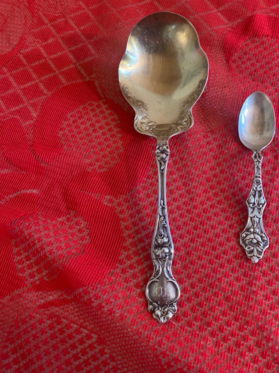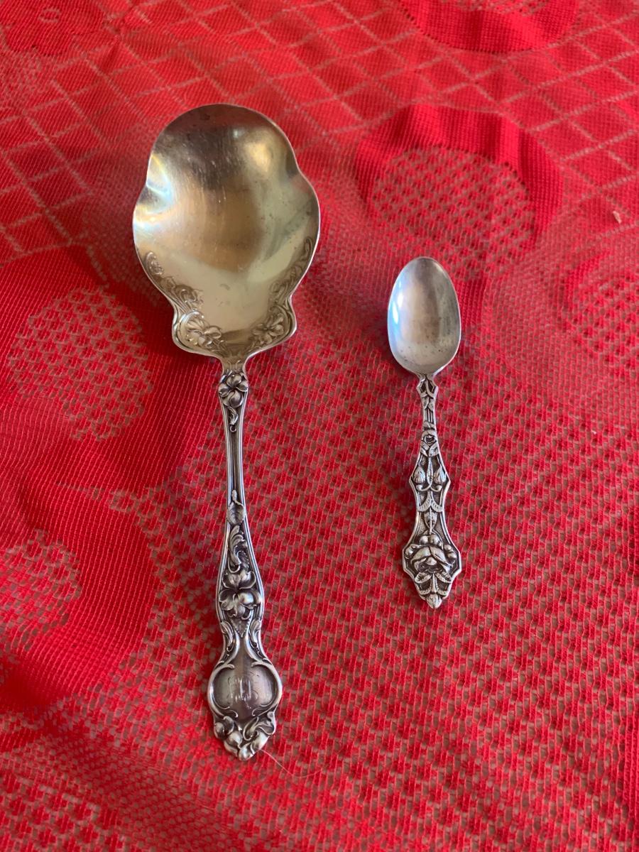 Lot includes RW Sterling large spoon, and a smaller Sterling SSMC small spoon.