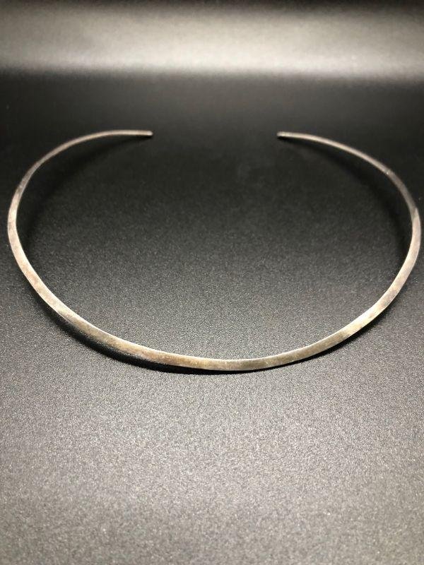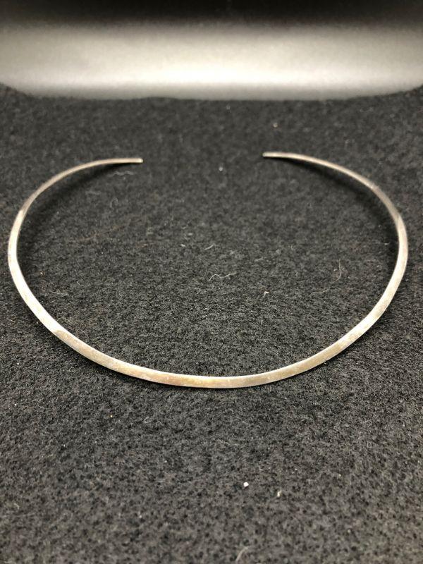 Thin sterling silver cuff style choker necklace. Stamped 925. Can be bent tighter or looser to get that perfect fit.