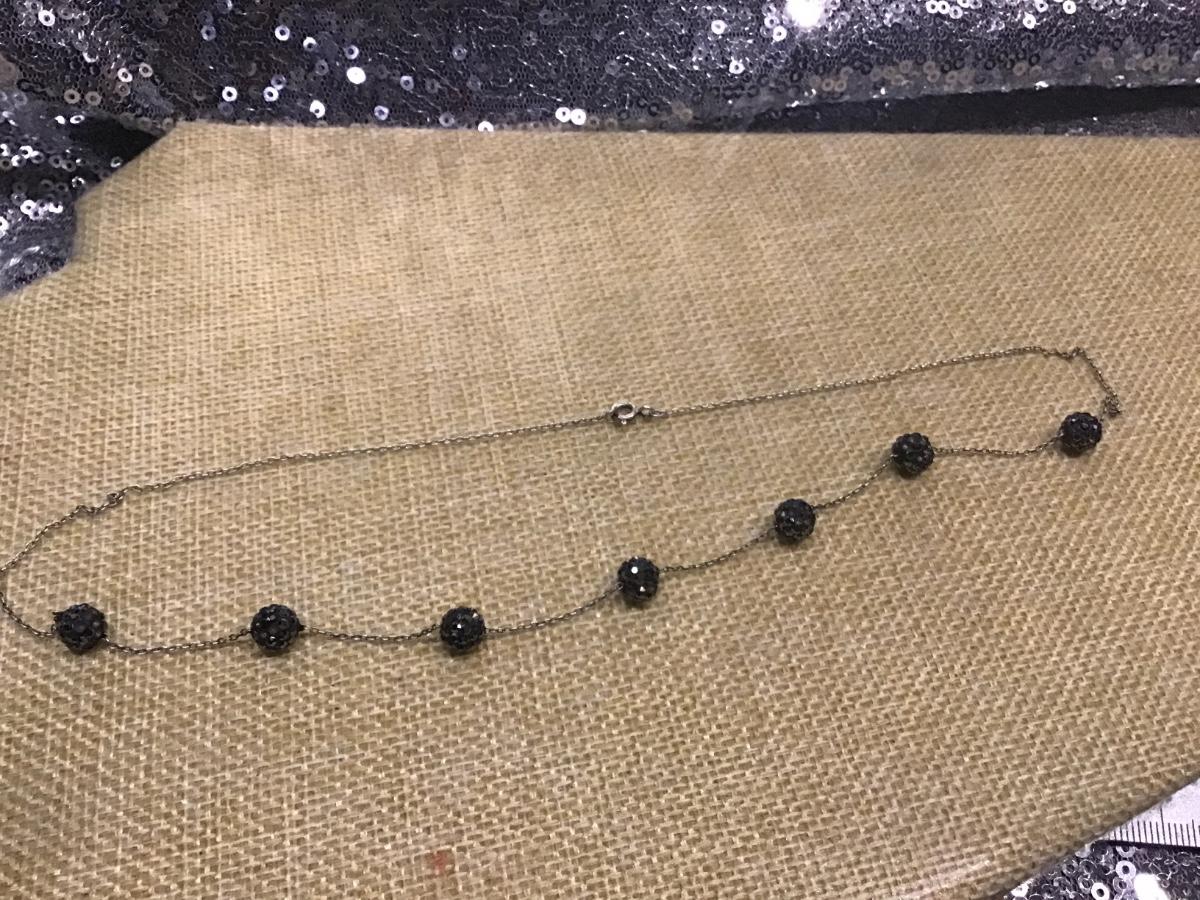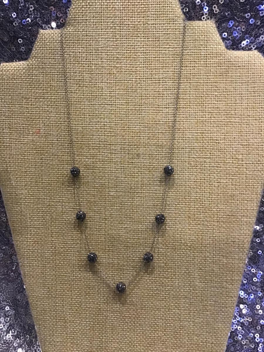 Sterling Silver 925 Gray Sparkling Bead Necklace