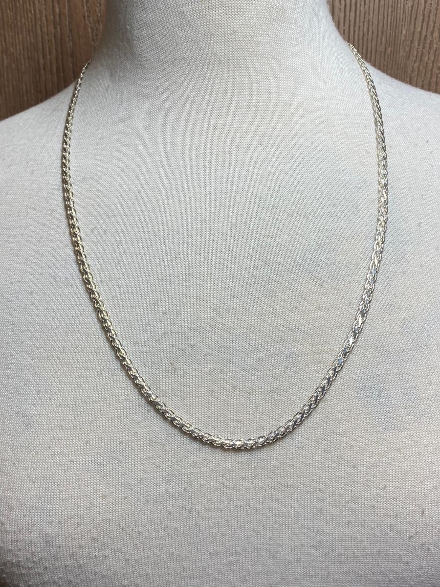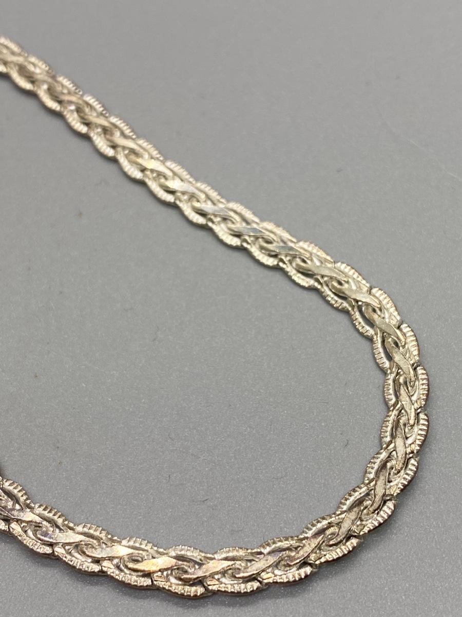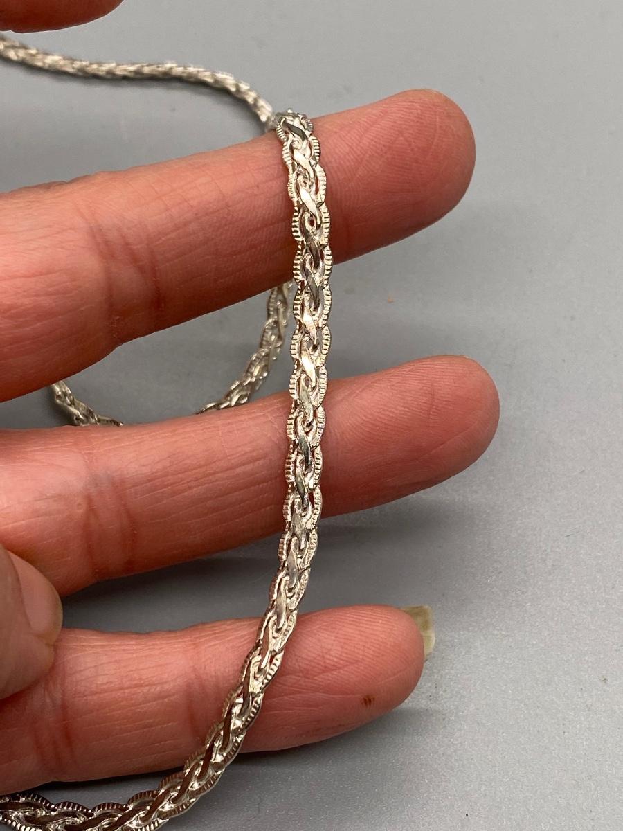 Sterling silver intertwined double link chain necklace. About 12" length. Stamped at clasp.