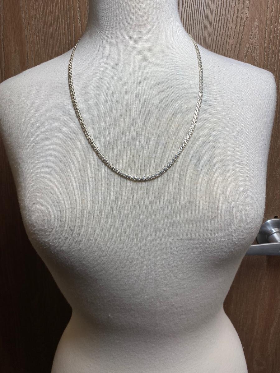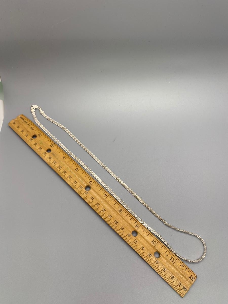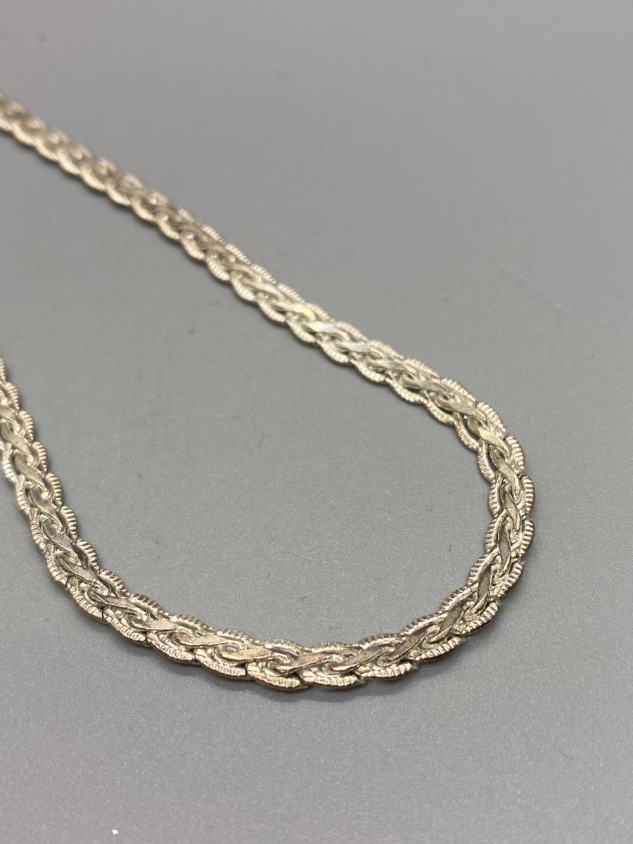 Sterling silver intertwined double link chain necklace. About 12" length. Stamped at clasp.