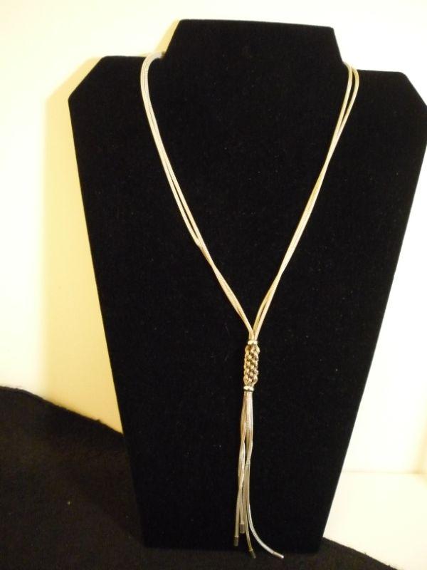 Long necklace with clasp - made in Italy - marked 925 - measures 9 inches from clasp to top of decorative braid - almost 15 inches total length